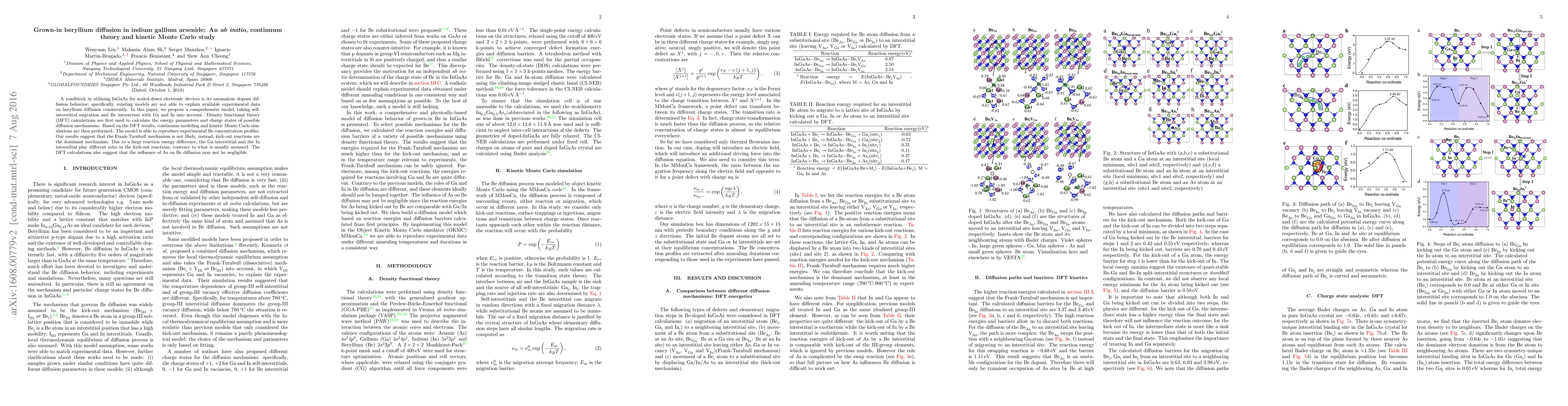 This paper proposes a comprehensive model for beryllium diffusion in InGaAs, combining ab initio calculations, continuum theory, and kinetic Monte Carlo simulations. The study reveals that kick-out reactions, rather than the Frank-Turnbull mechanism, dominate beryllium diffusion, with Ga and In interstitials playing distinct roles.