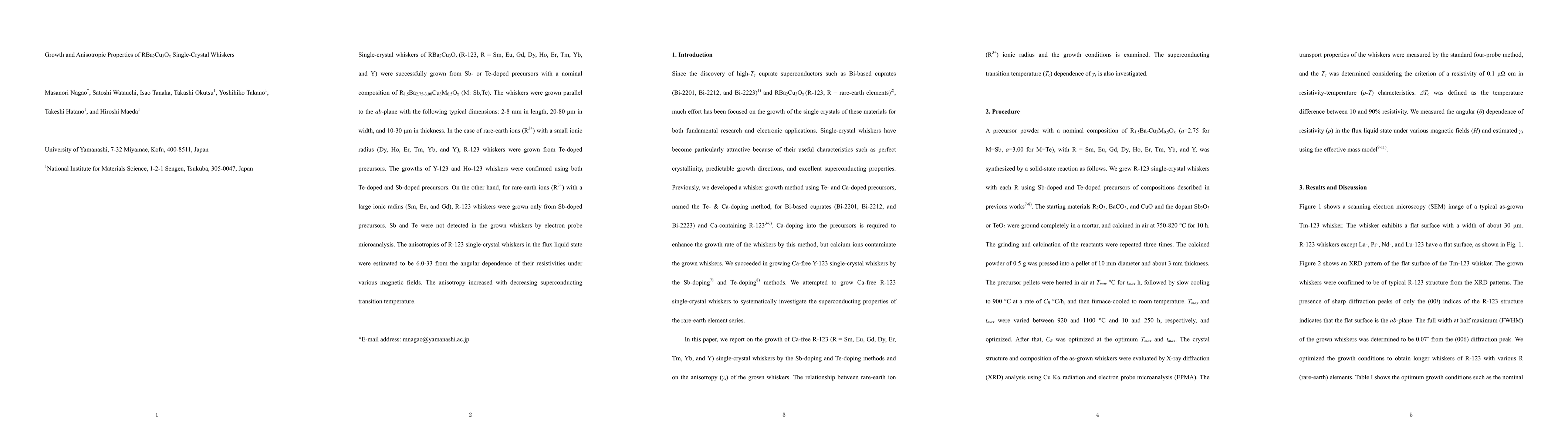 Researchers successfully grew single-crystal whiskers of rare-earth cuprate materials with varying anisotropic properties, which depend on the size of the rare-earth ion and their superconducting transition temperature.
