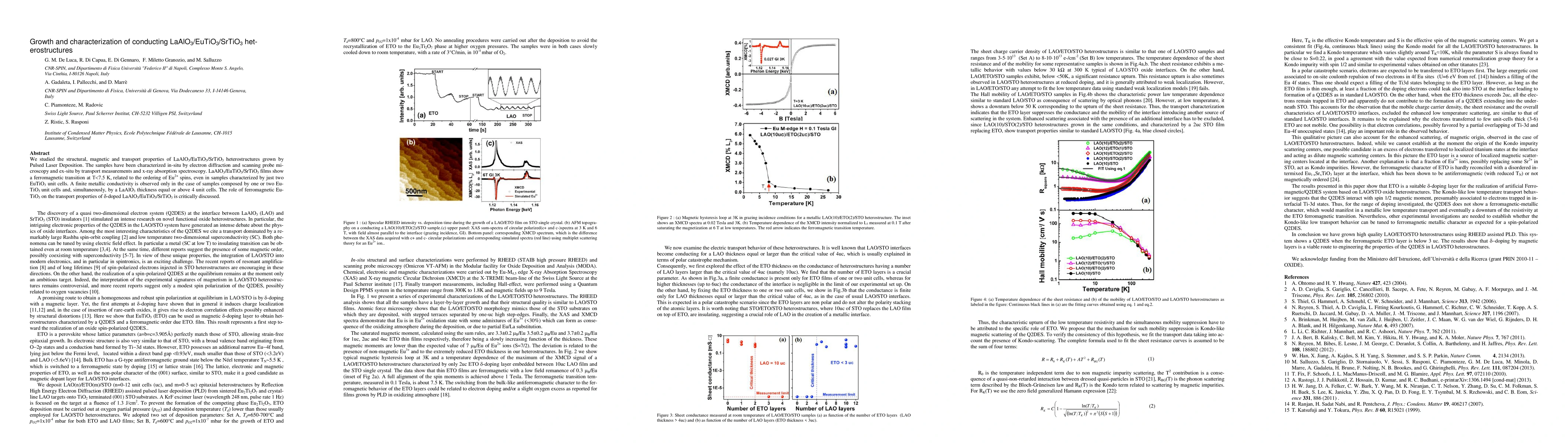 This paper investigates the structural, magnetic, and transport properties of LaAlO3/EuTiO3/SrTiO3 heterostructures grown using Pulsed Laser Deposition. The study reveals a ferromagnetic transition at T<7.5 K due to Eu2+ spin ordering, with metallic conductivity observed only in samples with specific EuTiO3 and LaAlO3 thickness configurations.