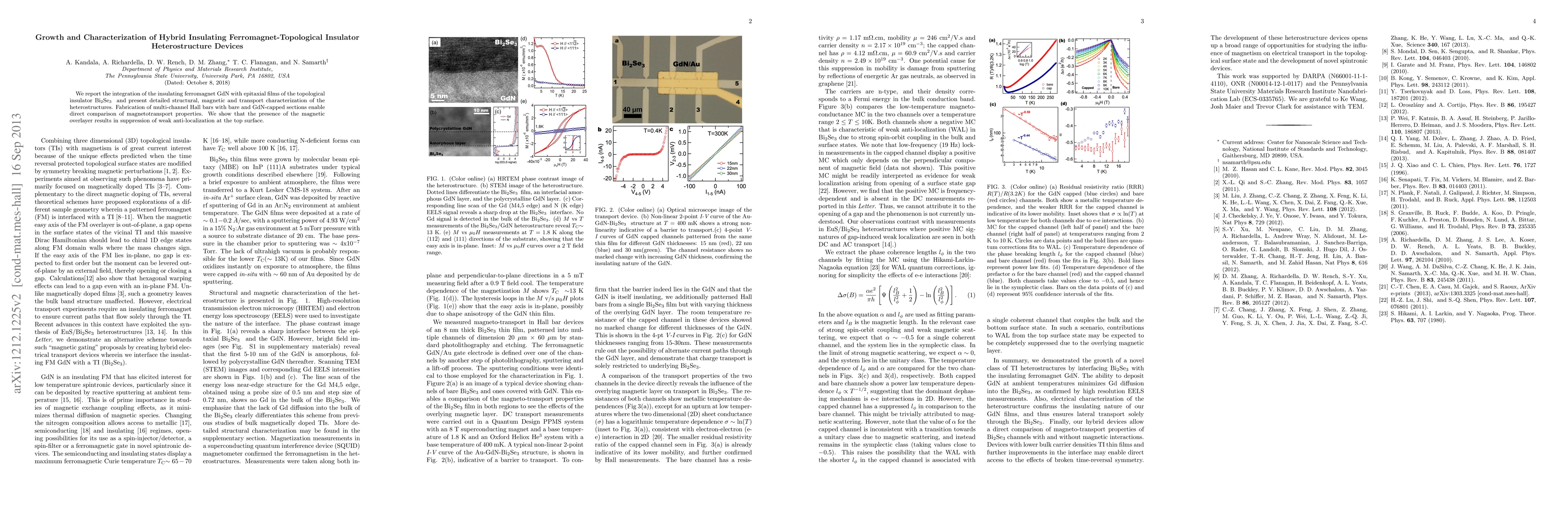 The research employed a combination of molecular beam epitaxy (MBE) and electron beam lithography to fabricate hybrid insulating ferromagnet-topological insulator heterostructure devices.