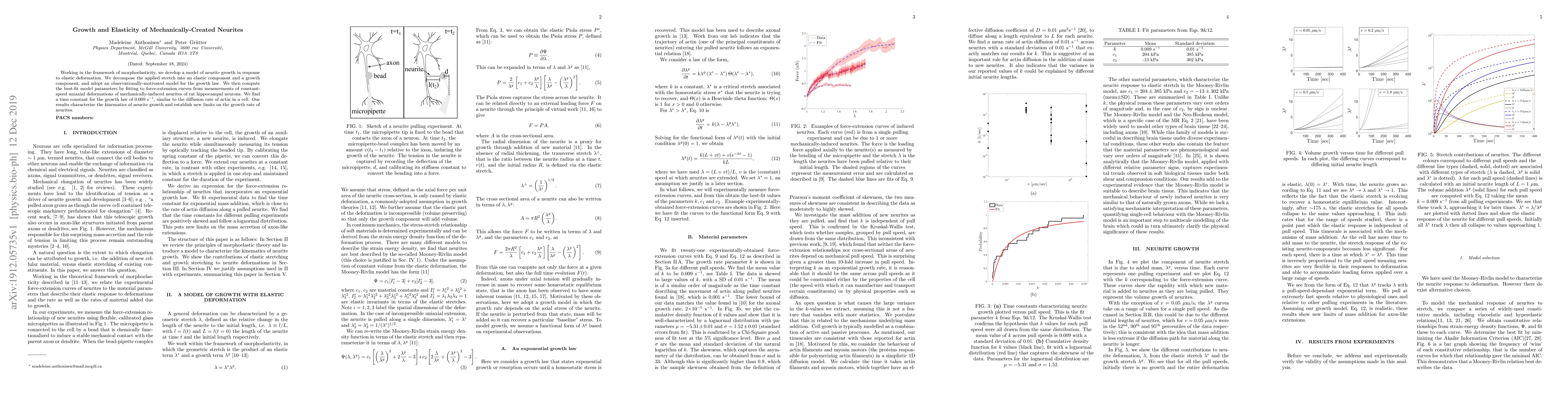 Researchers developed a model of neurite growth in response to elastic deformation, finding a time constant for the growth law similar to actin diffusion rate in cells, establishing new limits on neurite growth rates.