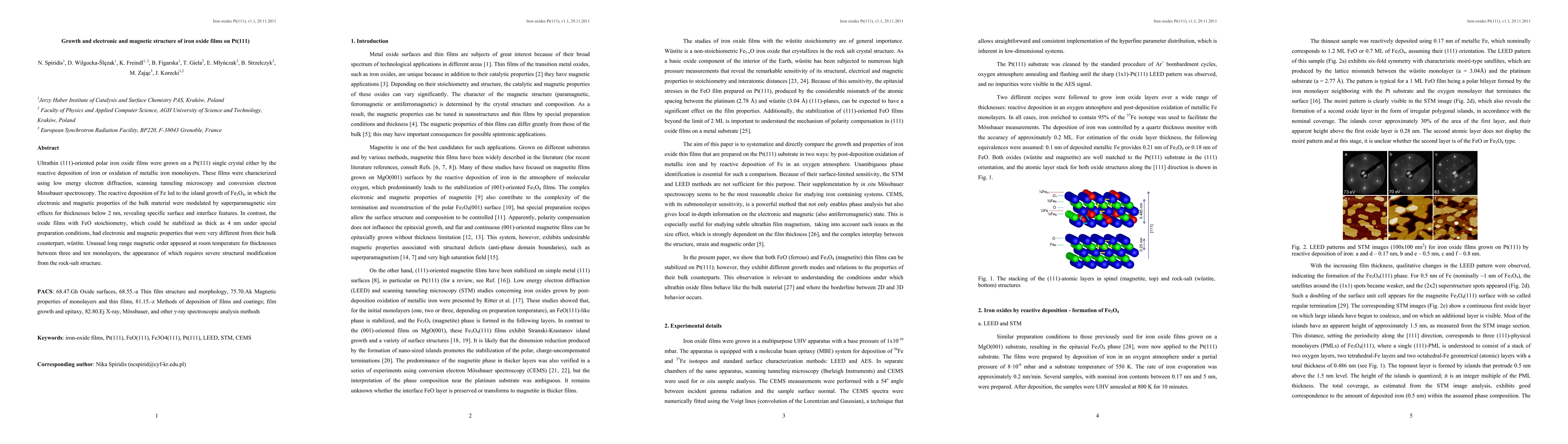 Researchers grew ultrathin iron oxide films on Pt(111) and found that their electronic and magnetic properties were significantly altered due to superparamagnetic size effects or unusual long-range magnetic order, depending on the film thickness.