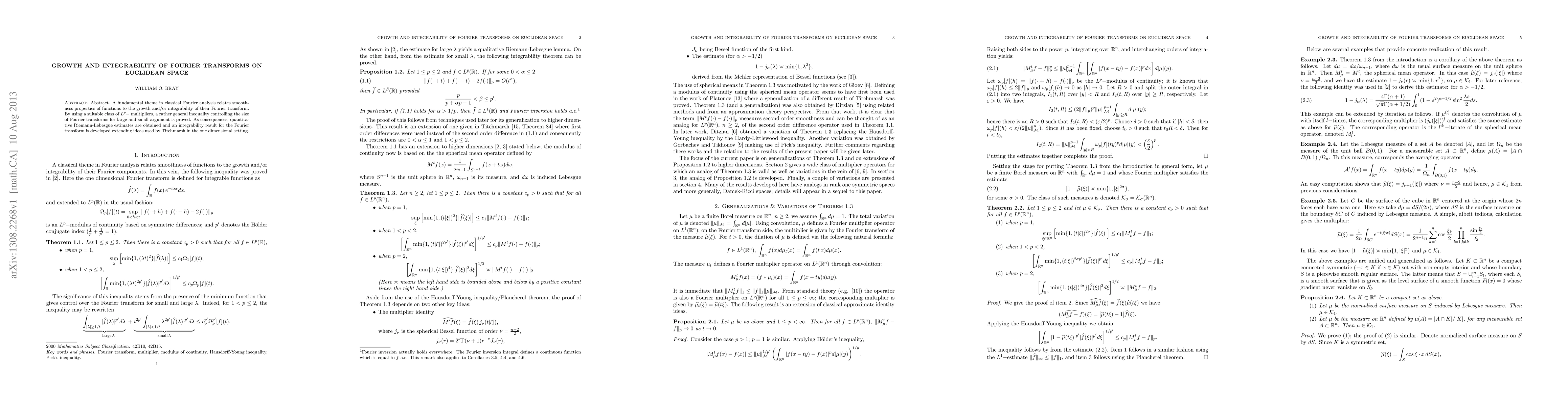 A fundamental theme in classical Fourier analysis relates smoothness properties of functions to the growth and/or integrability of their Fourier transform. By using a suitable class of $L^{p}-$multipliers, a rather general inequality controlling the size of Fourier transforms for large and small argument is proved. As consequences, quantitative Riemann-Lebesgue estimates are obtained and an integrability result for the Fourier transform is developed extending ideas used by Titchmarsh in the one dimensional setting.