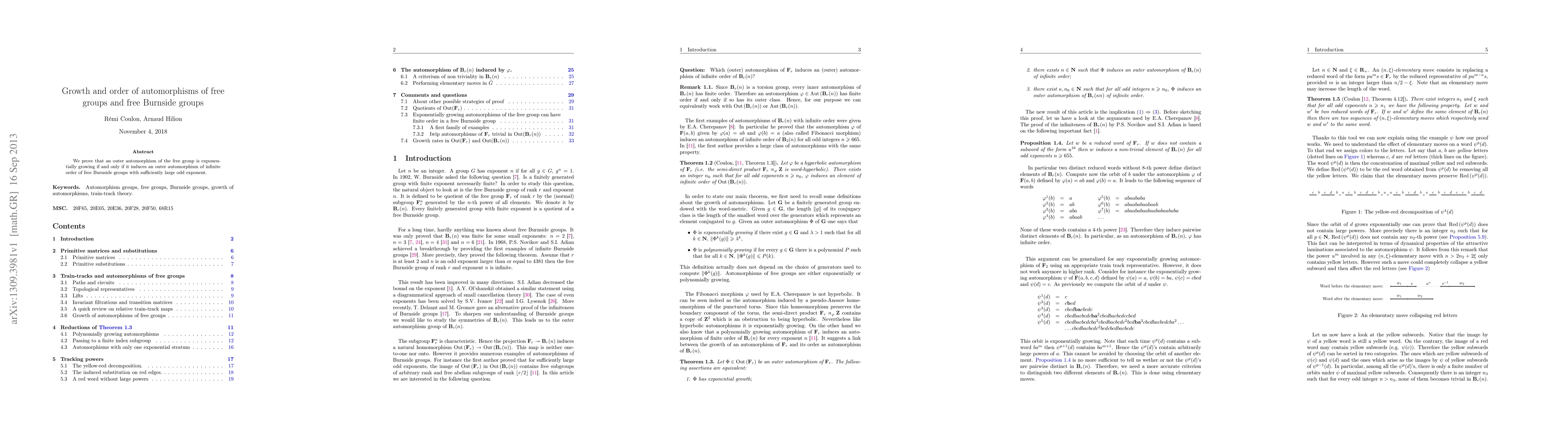 Summary: This paper establishes a connection between the exponential growth of outer automorphisms in free groups and the infinite order of induced automorphisms in free Burnside groups with large odd exponents. The result highlights a fundamental link between these two algebraic structures.