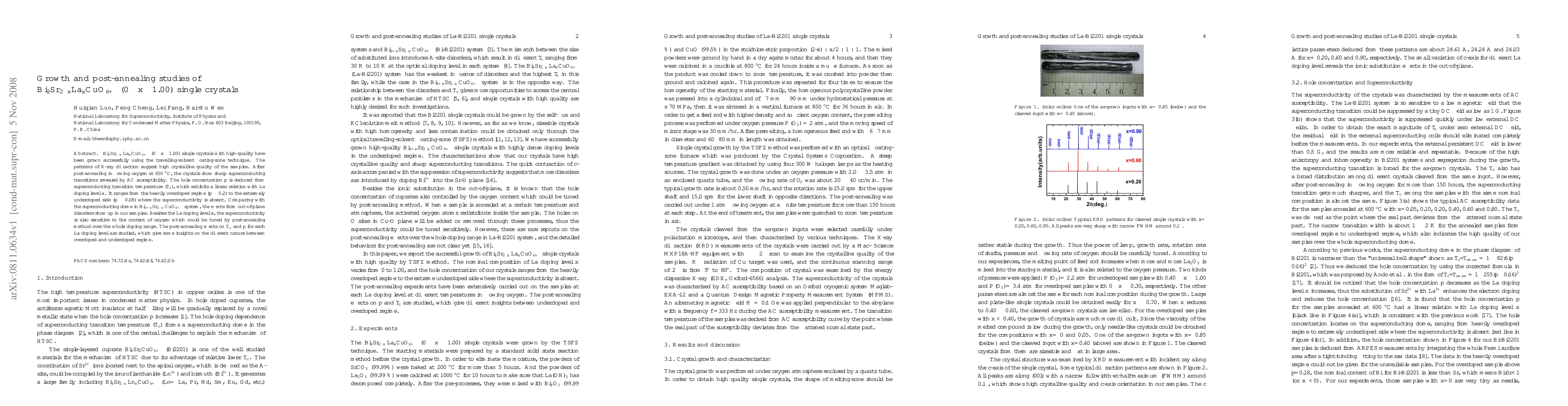 This study successfully grows high-quality La-doped Bi$_2$Sr$_{2-x}$La$_x$CuO$_{6+\delta}$ single crystals using the travelling-solvent floating-zone technique. Post-annealing in oxygen at 600 $^o$C enhances superconductivity, with $T_c$ varying linearly with La doping level $x$ from overdoped to underdoped regimes.