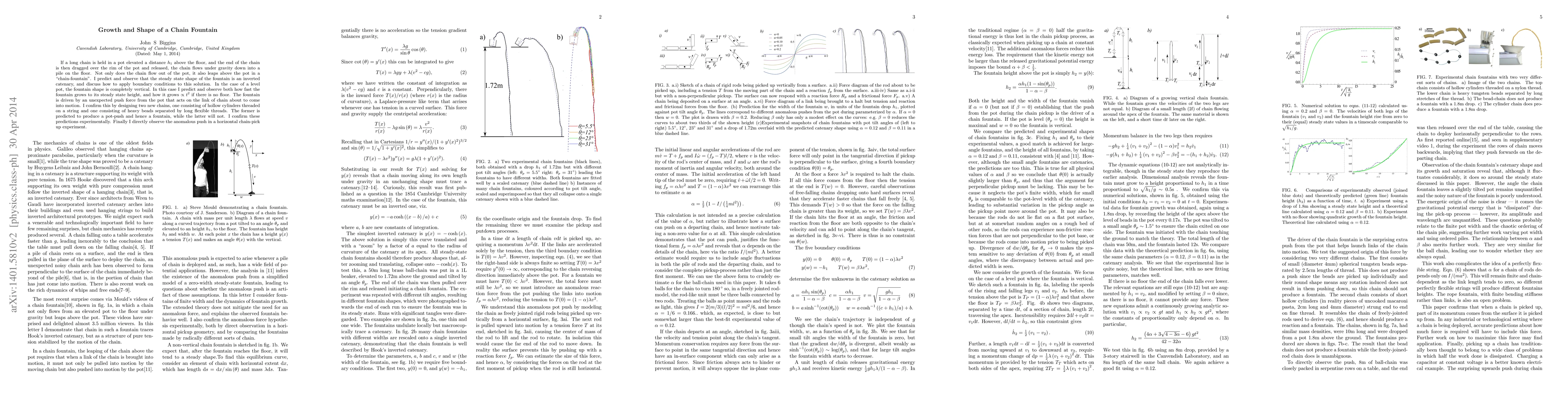 If a long chain is held in a pot elevated a distance h_1 above the floor, and the end of the chain is then dragged over the rim of the pot and released, the chain flows under gravity down into a pile on the floor. Not only does the chain flow out of the pot, it also leaps above the pot in a "chain-fountain". I predict and observe that if the pot is held at an angle to the vertical the steady state shape of the fountain is an inverted catenary, and discuss how to apply boundary conditions to this solution. In the case of a level pot, the fountain shape is completely vertical. In this case I predict and observe both how fast the fountain grows to its steady state hight, and how it grows quadratically in time if there is no floor. The fountain is driven by an anomalous push force from the pot that acts on the link of chain about to come into motion. I confirm this by designing two new chains, one consisting of hollow cylinders threaded on a string and one consisting of heavy beads separated by long flexible threads. The former is predicted to produce a pot-push and hence a fountain, while the latter will not. I confirm these predictions experimentally. Finally I directly observe the anomalous push in a horizontal chain-pick up experiment.