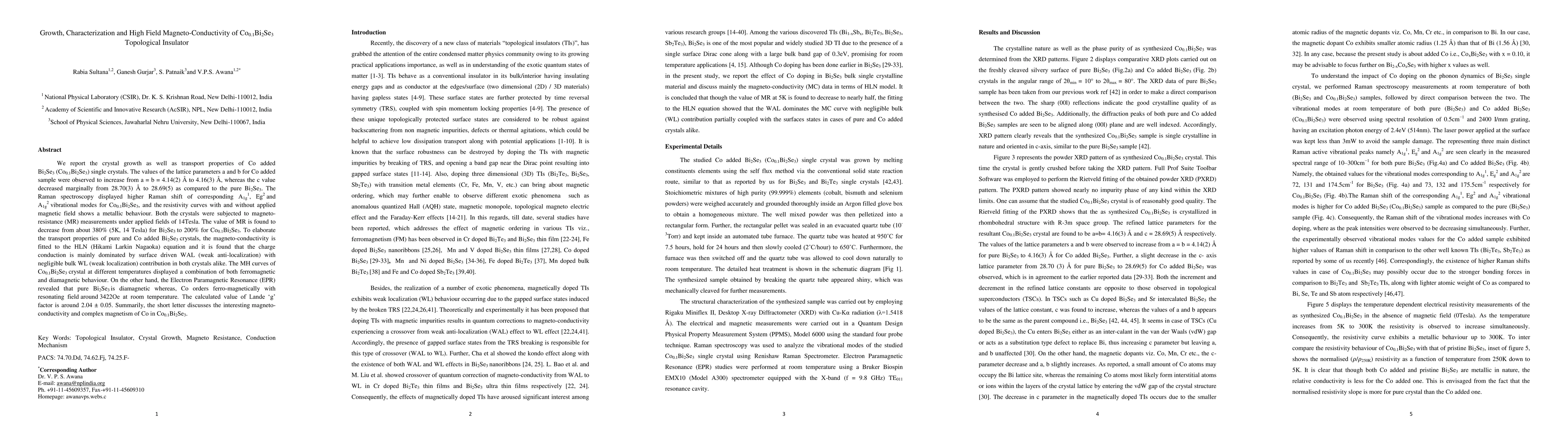 N. K. Karn, Kapil Kumar, V. P. S. Awana et al.