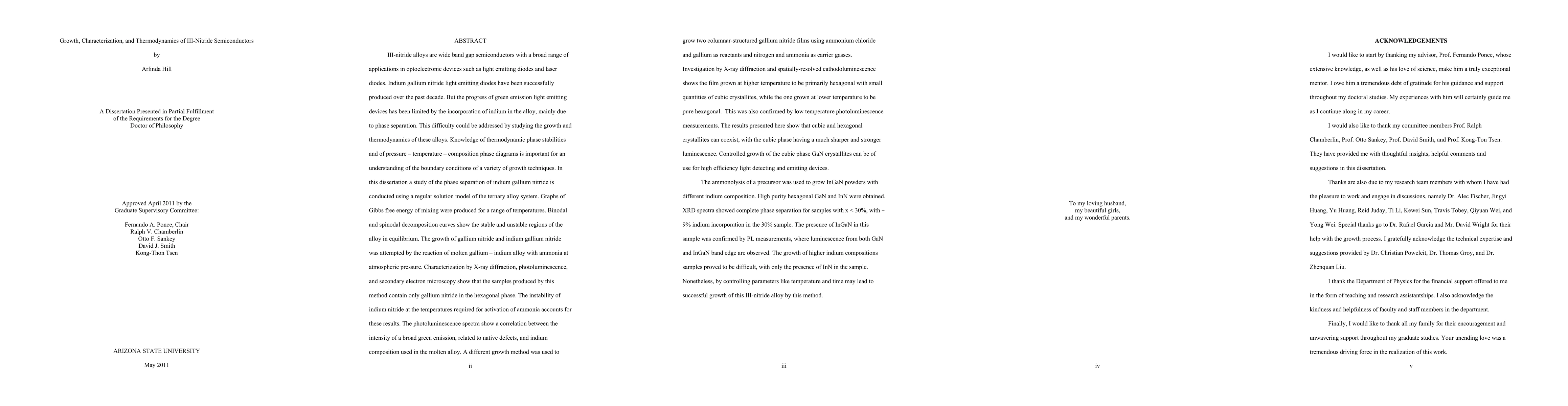 This paper investigates the growth and thermodynamic properties of III-nitride semiconductors, focusing on indium gallium nitride alloys, to address the challenges of phase separation in green emission devices. It employs a regular solution model to analyze phase separation and constructs Gibbs free energy graphs to delineate stable and unstable regions in the alloy.