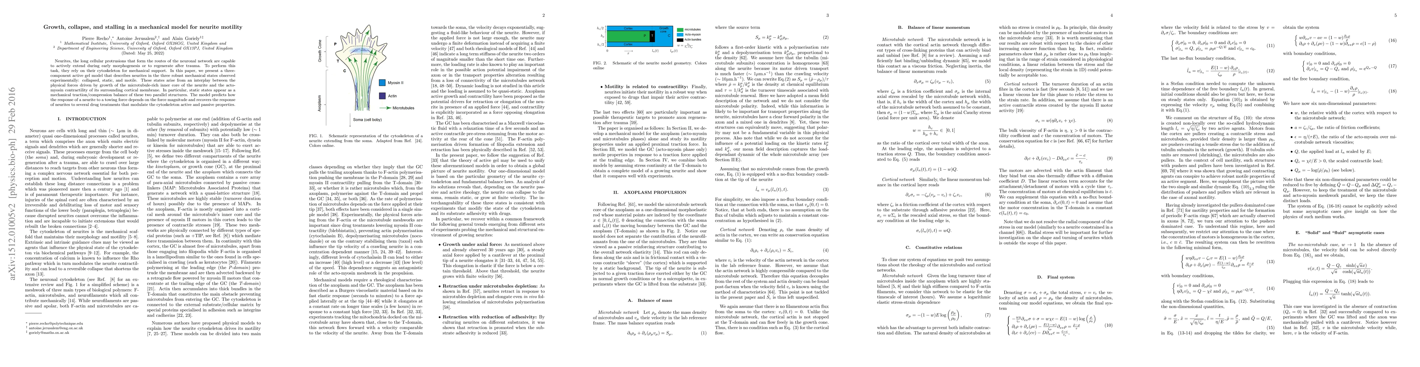 Neurites, the long cellular protrusions that form the routes of the neuronal network are capable to actively extend during early morphogenesis or to regenerate after trauma. To perform this task, they rely on their cytoskeleton for mechanical support. In this paper, we present a three-component active gel model that describes neurites in the three robust mechanical states observed experimentally: collapsed, static, and motile. These states arise from an interplay between the physical forces driven by growth of the microtubule-rich inner core of the neurite and the acto-myosin contractility of its surrounding cortical membrane. In particular, static states appear as a mechanical traction/compression balance of these two parallel structures. The model predicts how the response of a neurite to a towing force depends on the force magnitude and recovers the response of neurites to several drug treatments that modulate the cytoskeleton active and passive properties.