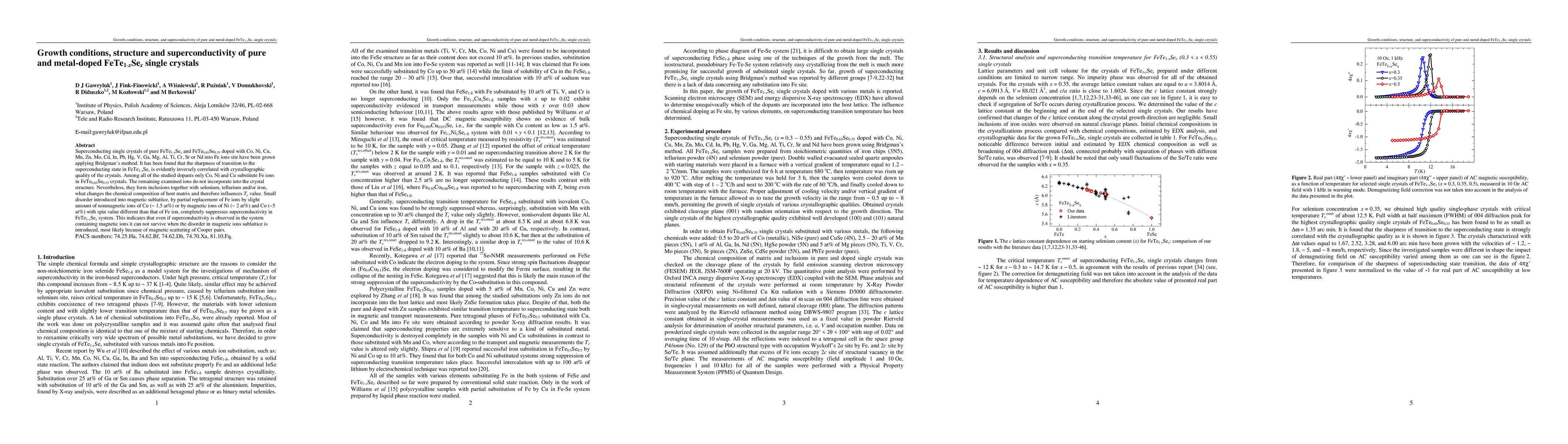 Superconducting single crystals of pure FeTe1 xSex and FeTe0.65Se0.35 doped with Co, Ni, Cu, Mn, Zn, Mo, Cd, In, Pb, Hg, V, Ga, Mg, Al, Ti, Cr, Sr or Nd into Fe ions site have been grown applying Bridgman's method. It has been found that the sharpness of transition to the superconducting state in FeTe1 xSex is evidently inversely correlated with crystallographic quality of the crystals. Among all of the studied dopants only Co, Ni and Cu substitute Fe ions in FeTe0.65Se0.35 crystals. The remaining examined ions do not incorporate into the crystal structure. Nevertheless, they form inclusions together with selenium, tellurium and/or iron, what changes the chemical composition of host matrix and therefore influences Tc value. Small disorder introduced into magnetic sublattice, by partial replacement of Fe ions by slight amount of nonmagnetic ions of Cu (~ 1.5 at%) or by magnetic ions of Ni (~ 2 at%) and Co (~5 at%) with spin value different than that of Fe ion, completely suppresses superconductivity in FeTe1 xSex system. This indicates that even if superconductivity is observed in the system containing magnetic ions it can not survive when the disorder in magnetic ions sublattice is introduced, most likely because of magnetic scattering of Cooper pairs.