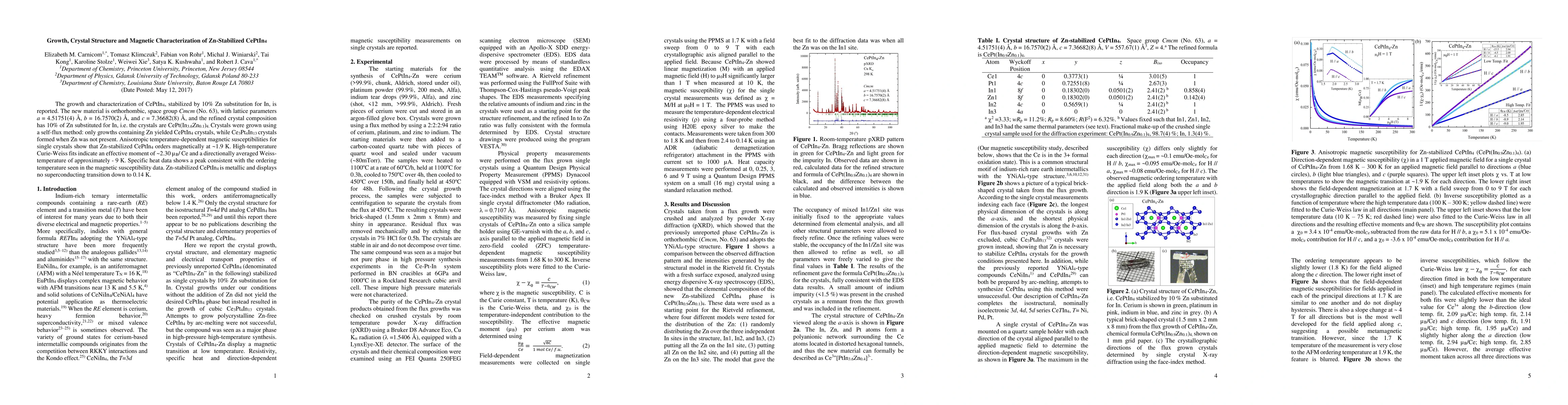 This study reports the growth and characterization of Zn-stabilized CePtIn4, revealing an orthorhombic crystal structure with Zn substitution for In. The material exhibits magnetic ordering at ~1.9 K and metallic behavior without superconductivity.
