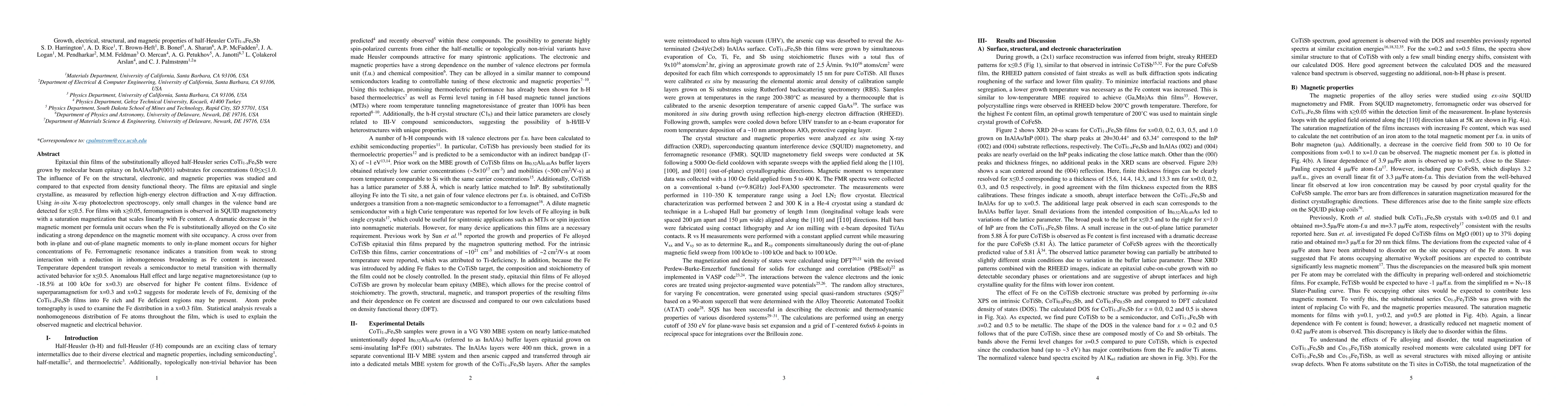 Researchers studied the effects of iron substitution in a half-Heusler compound, finding ferromagnetism and unusual electrical properties with increasing iron content, including anomalous Hall effect and large negative magnetoresistance.