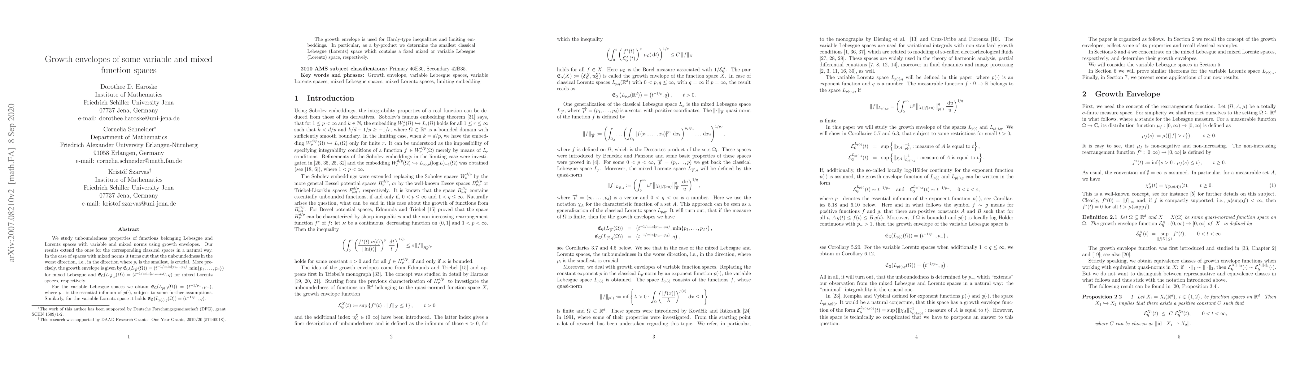 This paper investigates the growth envelopes of variable and mixed function spaces, extending classical results to Lebesgue and Lorentz spaces with variable and mixed norms. The study reveals that the worst-case unboundedness in the smallest norm direction is crucial, providing specific growth envelope expressions for mixed Lebesgue and Lorentz spaces and variable Lebesgue and Lorentz spaces.