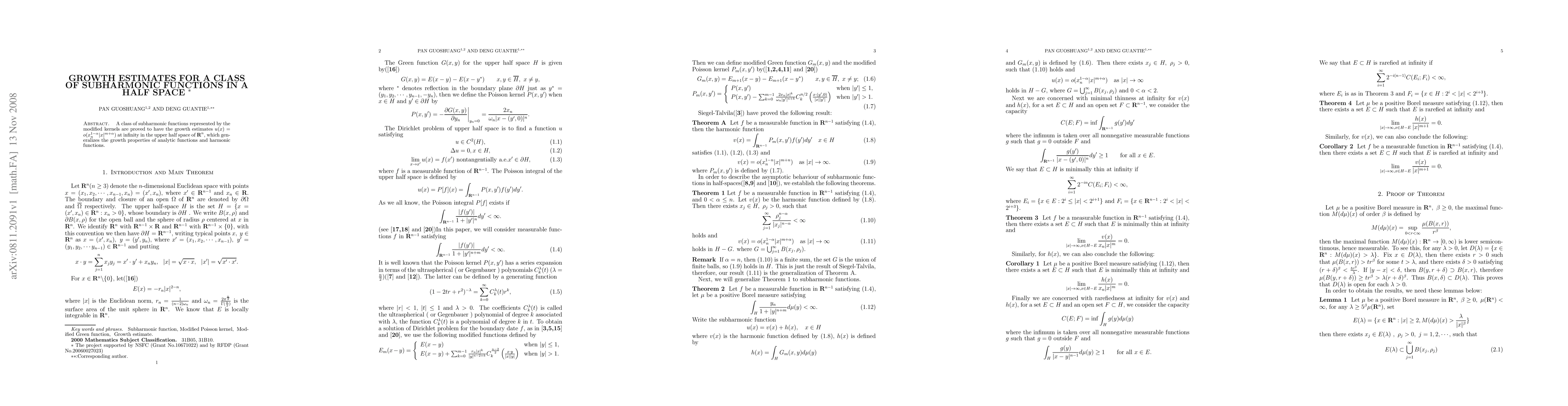 Summary: The paper proves growth estimates for a class of subharmonic functions in an upper half space, showing they grow at a rate of u(x) = o(x_{n}^{1-alpha}|x|^{m+alpha}) at infinity, generalizing the growth properties of analytic and harmonic functions.