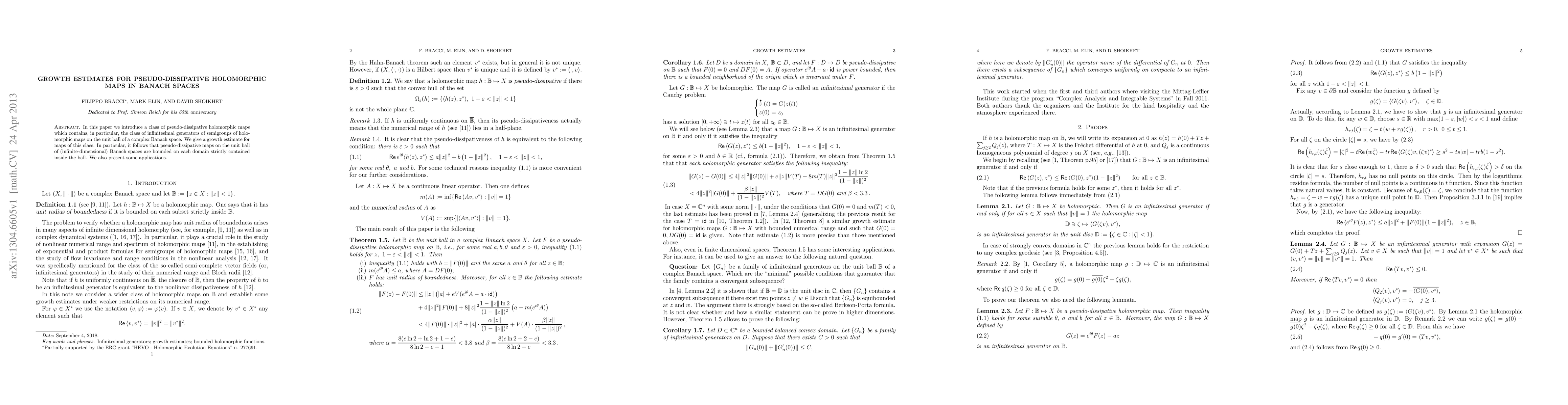 This paper introduces pseudo-dissipative holomorphic maps, including infinitesimal generators of semigroups, and provides a growth estimate showing these maps are bounded within strictly contained domains of Banach spaces. Applications of these findings are also discussed.