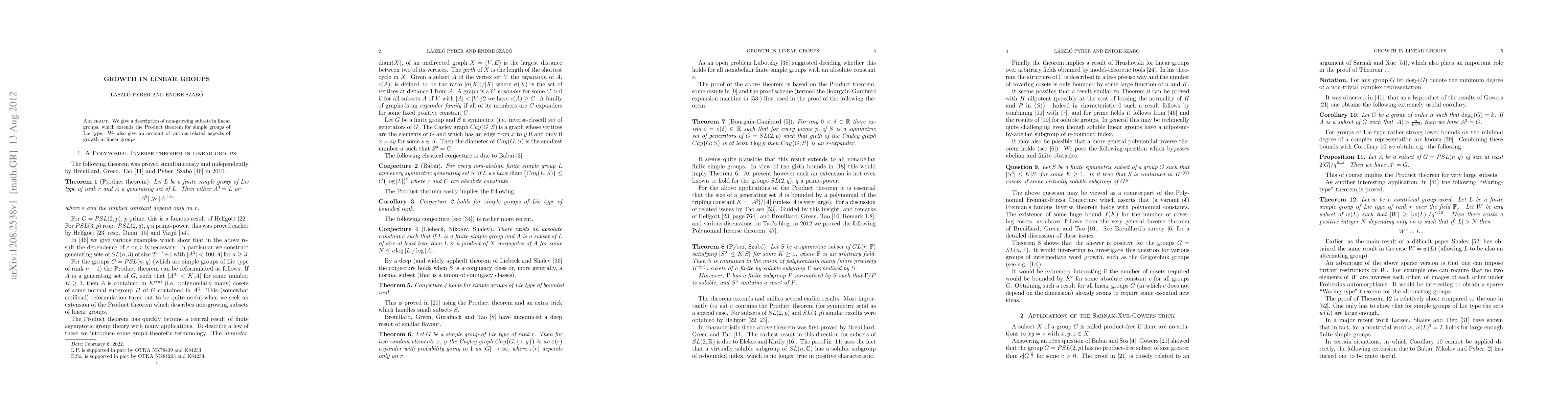 We give a description of non-growing subsets in linear groups, which extends the Product theorem for simple groups of Lie type. We also give an account of various related aspects of growth in linear groups.