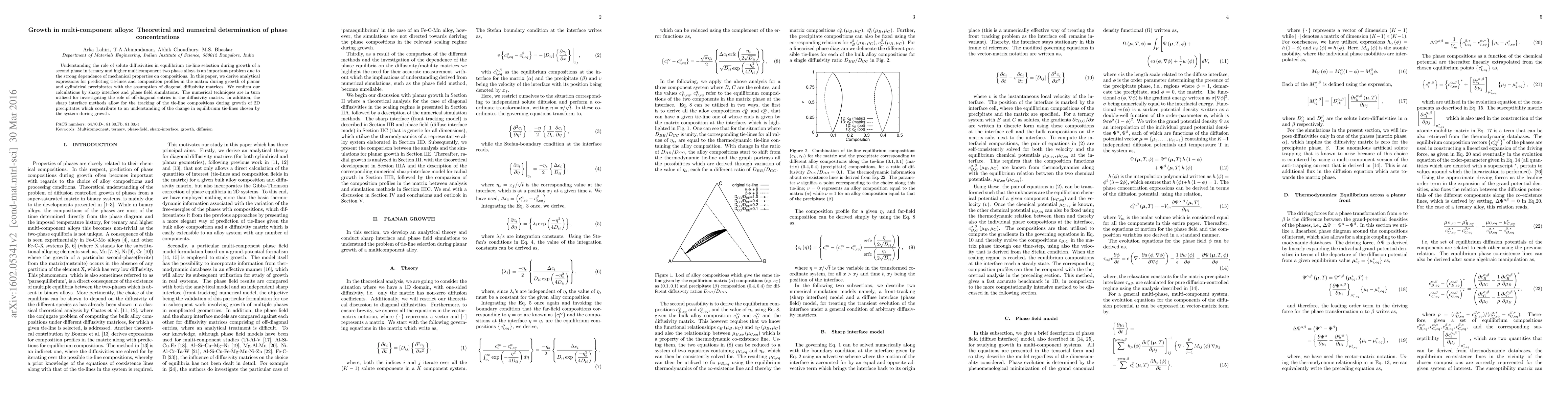 Understanding the role of solute diffusivities in equilibrium tie-line selection during growth of a second phase in ternary and higher multicomponent two phase alloys is an important problem due to the strong dependence of mechanical properties on compositions. In this paper, we derive analytical expressions for predicting tie-lines and composition profiles in the matrix during growth of planar and cylindrical precipitates with the assumption of diagonal diffusivity matrices. We confirm our calculations by sharp interface and phase field simulations. The numerical techniques are in turn utilized for investigating the role of off-diagonal entries in the diffusivity matrix. In addition, the sharp interface methods allow for the tracking of the tie-line compositions during growth of 2D precipitates which contribute to an understanding of the change in equilibrium tie-lines chosen by the system during growth.