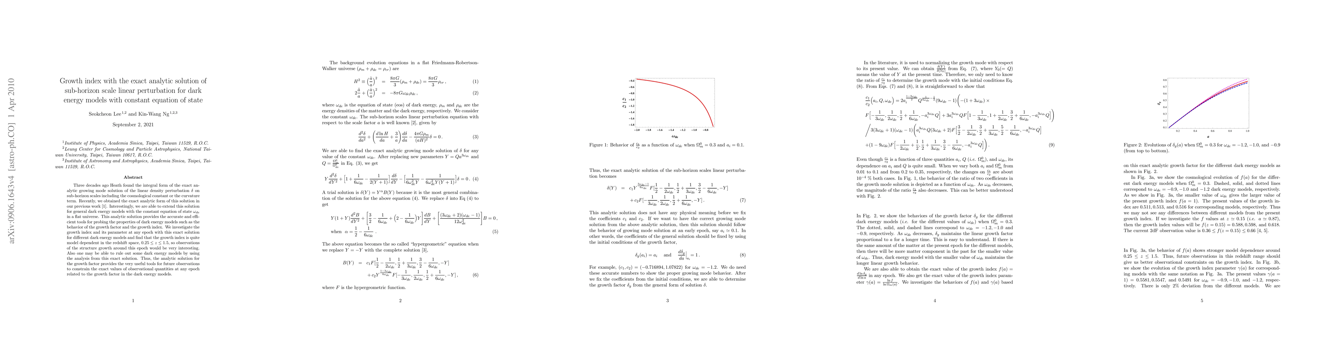 This paper extends Heath's exact analytic solution for linear density perturbations to general dark energy models with constant equation of state, providing insights into the growth index and factor. The study indicates that the growth index is model-dependent, suggesting that observations of structure growth at $0.25 \leq z \leq 1.5$ could help constrain dark energy models.