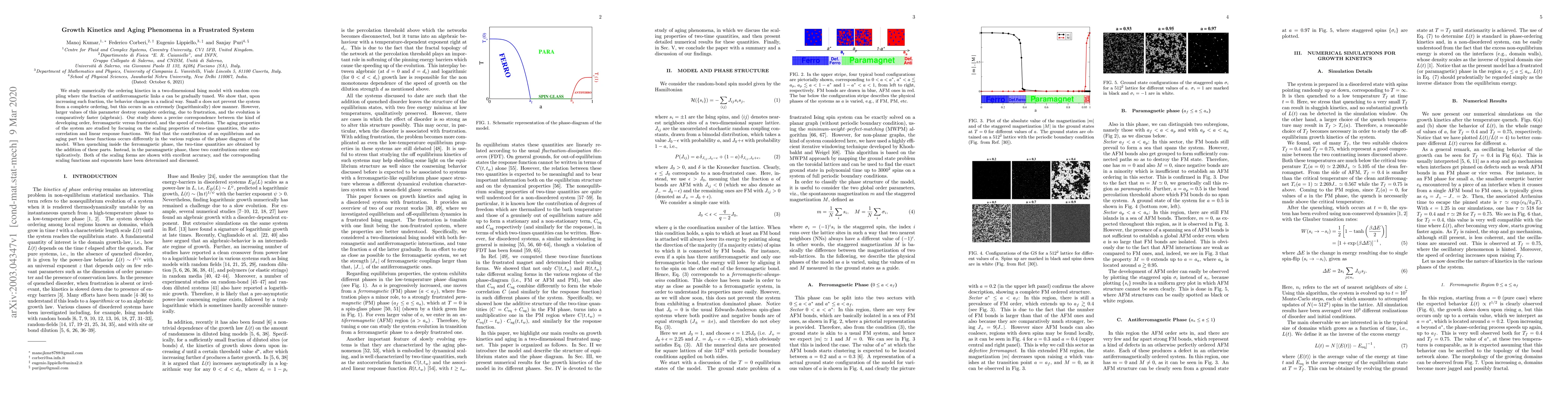 We study numerically the ordering kinetics in a two-dimensional Ising model with random coupling where the fraction of antiferromagnetic links $a$ can be gradually tuned. We show that, upon increasing such fraction, the behavior changes in a radical way. Small $a$ does not prevent the system from a complete ordering, but this occurs in an extremely (logarithmically) slow manner. However, larger values of this parameter destroy complete ordering, due to frustration, and the evolution is comparatively faster (algebraic). Our study shows a precise correspondence between the kind of developing order, ferromagnetic versus frustrated, and the speed of evolution. The aging properties of the system are studied by focusing on the scaling properties of two-time quantities, the autocorrelation and linear response functions. We find that the contribution of equilibrium and an aging part to these functions occurs differently in the various regions of the phase diagram of the model. When quenching inside the ferromagnetic phase, the two-time quantities are obtained by the addition of these parts. Instead, in the paramagnetic phase, these two contributions enter multiplicatively. Both of the scaling forms are shown with excellent accuracy, and the corresponding scaling functions and exponents have been determined and discussed.