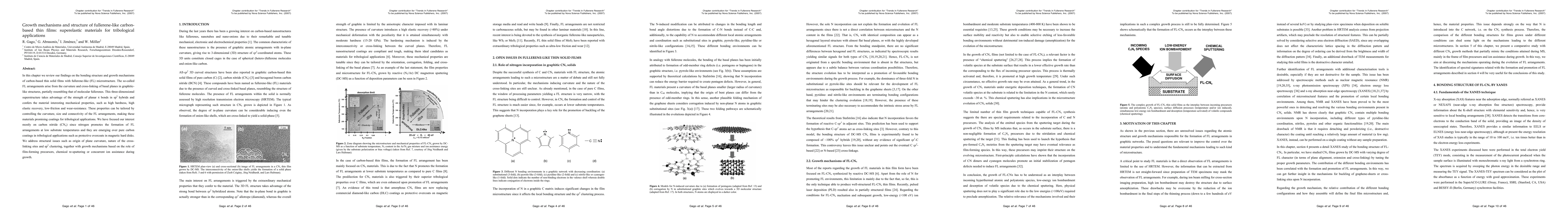 In this chapter we review our findings on the bonding structure and growth mechanisms of carbon-based thin solid films with fullerene-like (FL) microstructure. The so-called FL arrangements arise from the curvature and cross-linking of basal planes in graphitic-like structures, partially resembling that of molecular fullerenes. This three-dimensional superstructure takes advantage of the strength of planar pi bonds in sp2 hybrids and confers the material interesting mechanical properties, such as high hardness, high elastic recovery, low-friction and wear-resistance. These properties can be tailored by controlling the curvature, size and connectivity of the FL arrangements, making these materials promising coatings for tribological applications. We have focused our interest mostly on carbon nitride (CNx) since nitrogen promotes the formation of FL arrangements at low substrate temperatures and they are emerging over pure carbon coatings in tribological applications such as protective overcoats in magnetic hard disks. We address structural issues such as origin of plane curvature, nature of the cross-linking sites and sp2 clustering, together with growth mechanisms based on the role of film-forming precursors, chemical re-sputtering or concurrent ion assistance during growth.