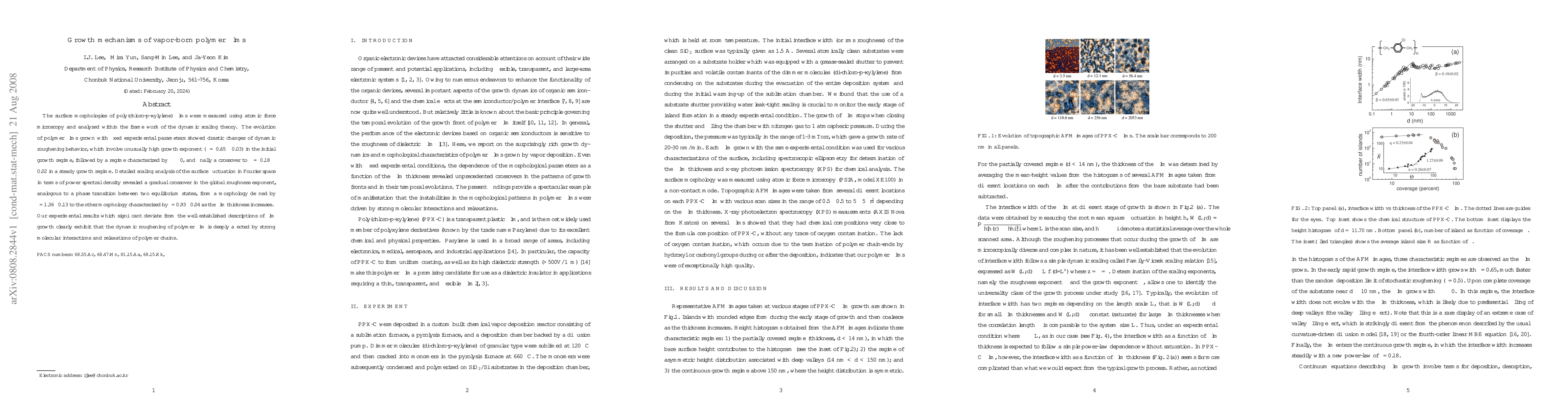 The surface morphologies of poly(chloro-p-xylylene) films were measured using atomic force microscopy and analyzed within the frame work of the dynamic scaling theory. The evolution of polymer films grown with fixed experimental parameters showed drastic changes of dynamic roughening behavior, which involve unusually high growth exponent (beta = 0.65+-0.03) in the initial growth regime, followed by a regime characterized by beta~0, and finally a crossover to beta = 0.18+-0.02 in a steady growth regime. Detailed scaling analysis of the surface fluctuation in Fourier space in terms of power spectral density revealed a gradual crossover in the global roughness exponent, analogous to a phase transition between two equilibrium states, from a morphology defined by alpha=1.36+-0.13 to the other morphology characterized by alpha=0.93+-0.04 as the film thickness increases. Our experimental results which significant deviate from the well established descriptions of film growth clearly exhibit that the dynamic roughening of polymer film is deeply affected by strong molecular interactions and relaxations of polymer chains.