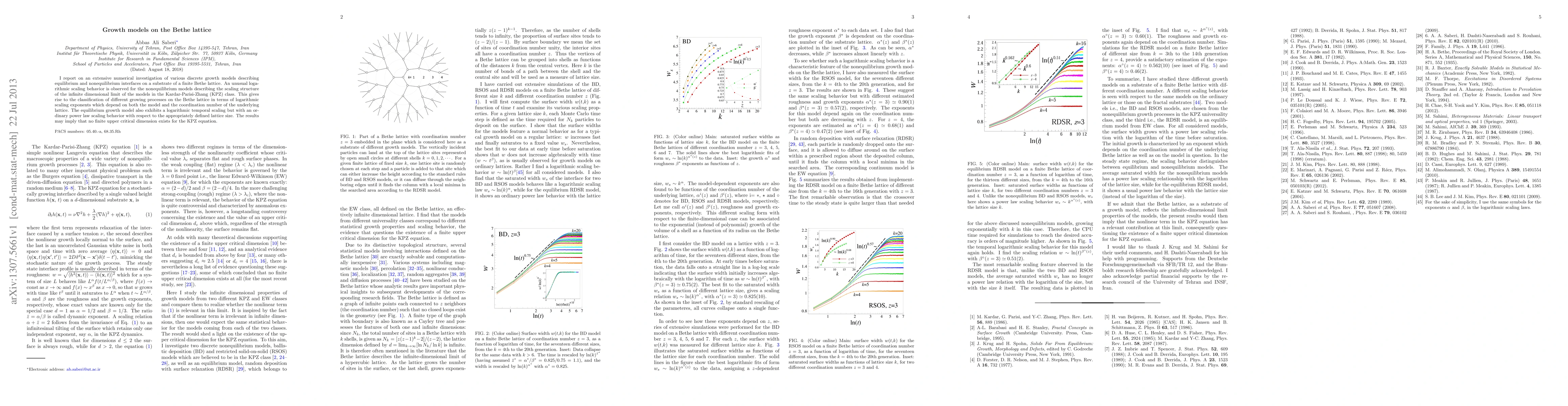 Researchers studied growth models on a finite Bethe lattice, discovering logarithmic scaling behaviors in nonequilibrium interfaces that classify different growing processes.