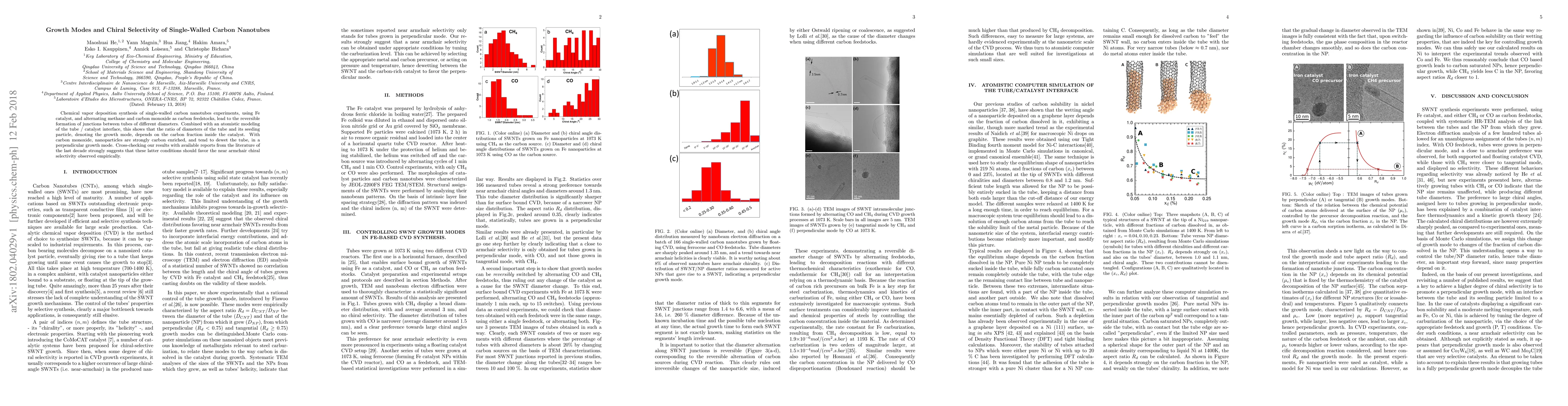 The paper presents a detailed analysis of growth modes and chiral selectivity in SWNT synthesis, supported by both experimental and computational methods.
