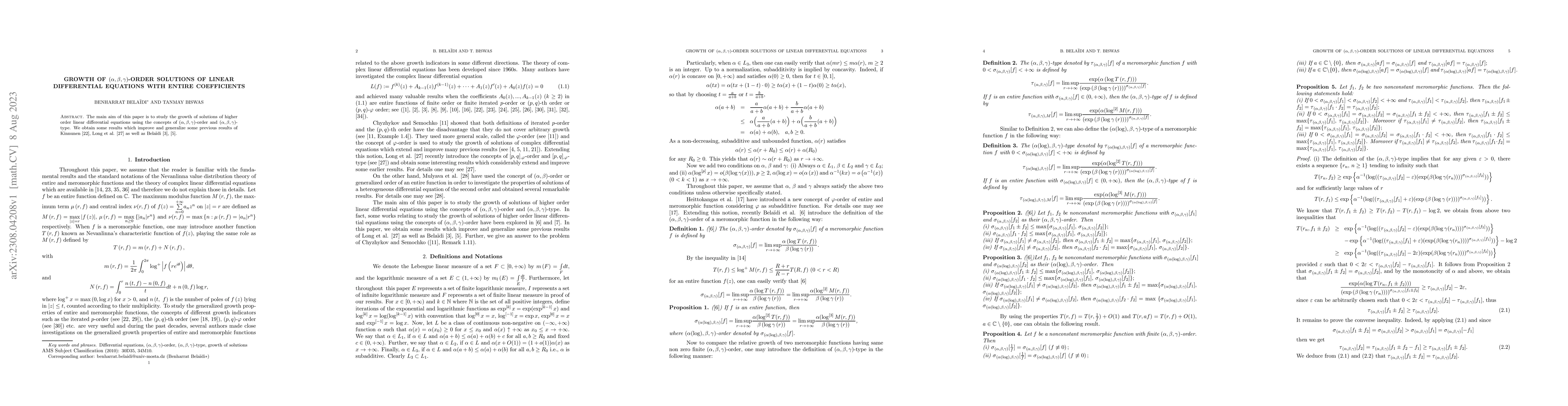 This paper explores the growth of $(\alpha, \beta, \gamma)$-order solutions for higher-order linear differential equations with entire coefficients, improving and generalizing prior results from Kinnunen, Long et al., and Belaïd. The study introduces new concepts of $(\alpha, \beta, \gamma)$-order and $(\alpha, \beta, \gamma)$-type to analyze these solutions.