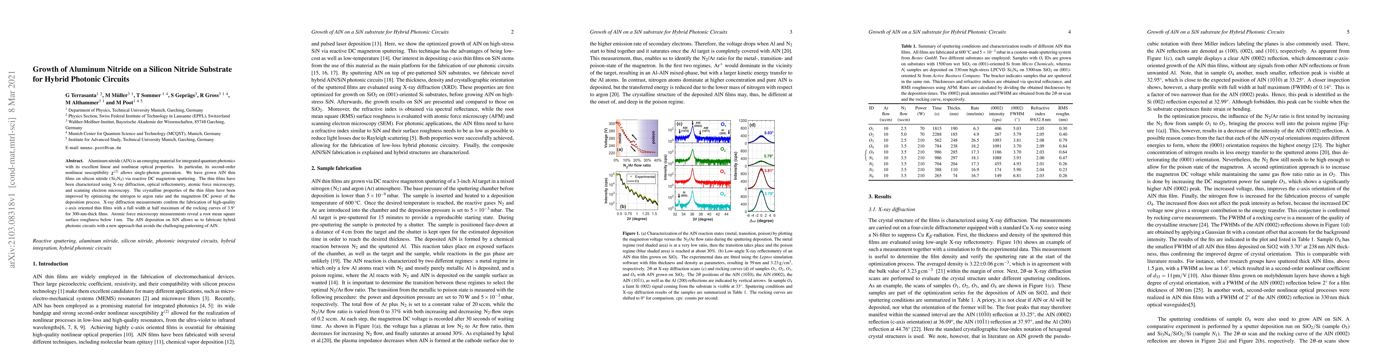 This study explores the growth of high-quality aluminum nitride (AlN) thin films on silicon nitride substrates using reactive DC magnetron sputtering, achieving c-axis orientation and low surface roughness, which facilitates the fabrication of hybrid photonic circuits. The optimization of deposition parameters enhances the crystalline properties, enabling potential applications in integrated quantum photonics.