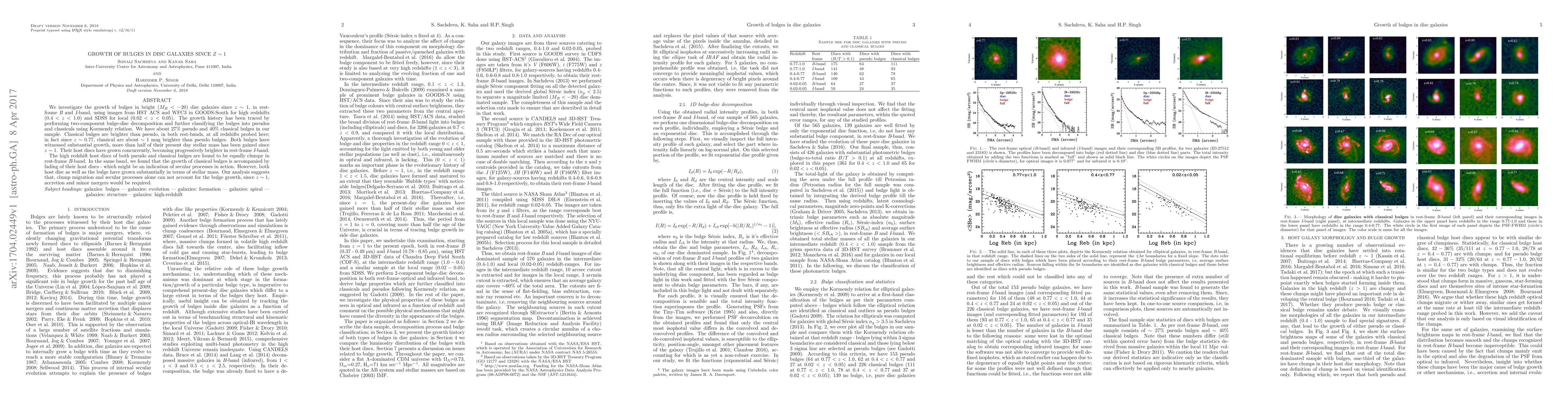 Disc galaxy bulges have grown substantially since z ~ 1, with classical bulges being brighter than pseudo bulges, while both types of bulges grew due to accretion and minor mergers.