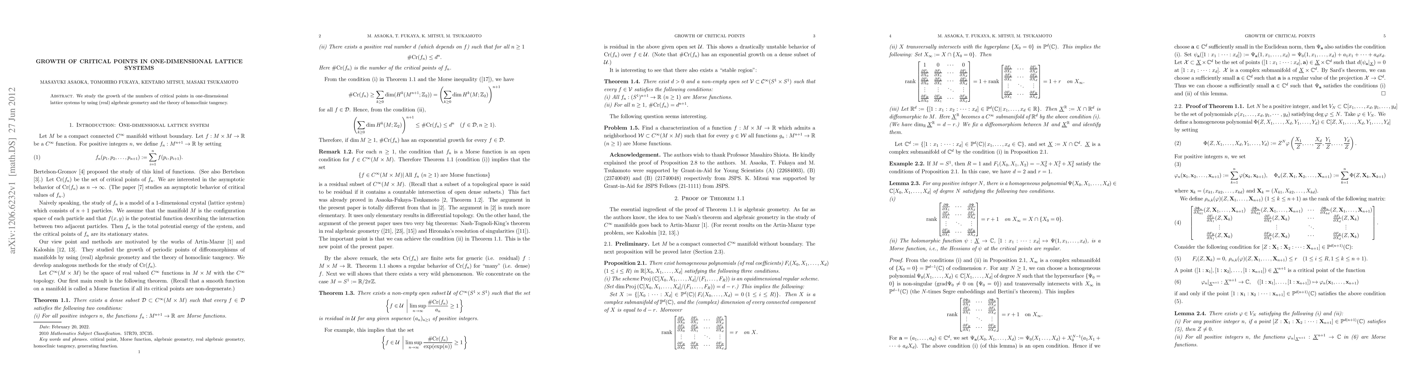 Summary: This paper investigates the increase in critical points within one-dimensional lattice systems through the application of real algebraic geometry and homoclinic tangency theory. The study aims to understand the dynamics and structural changes in these systems.