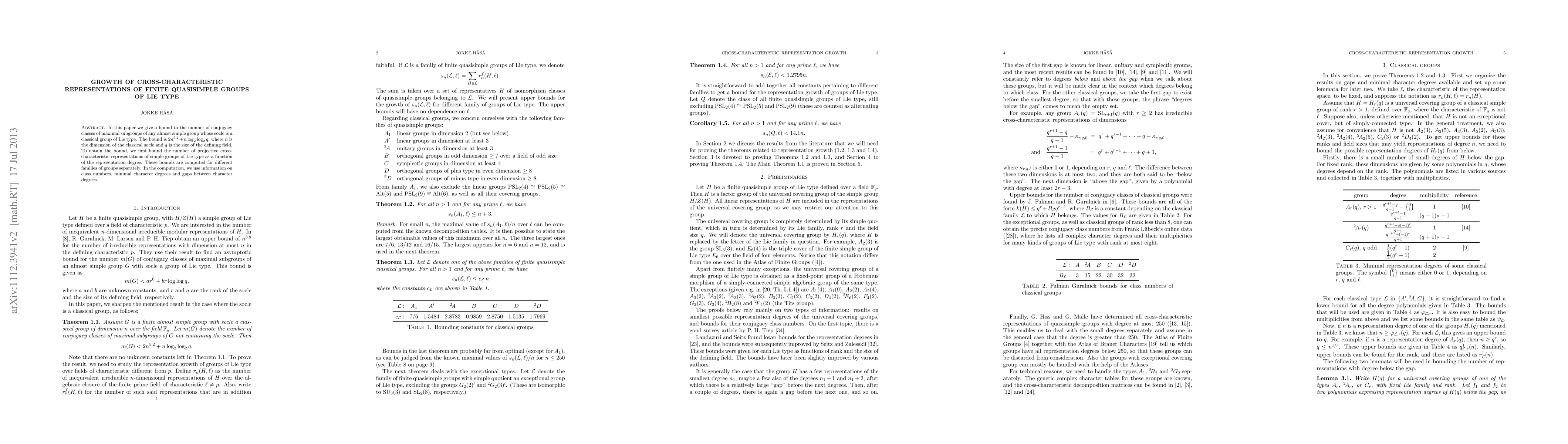 This paper establishes a bound for the number of conjugacy classes of maximal subgroups in finite quasisimple groups of Lie type, which is $2n^{5.2}+n\log_2\log_2 q$. The authors achieve this by first determining bounds for projective cross-characteristic representations of these groups, utilizing class numbers, minimal character degrees, and character degree gaps.