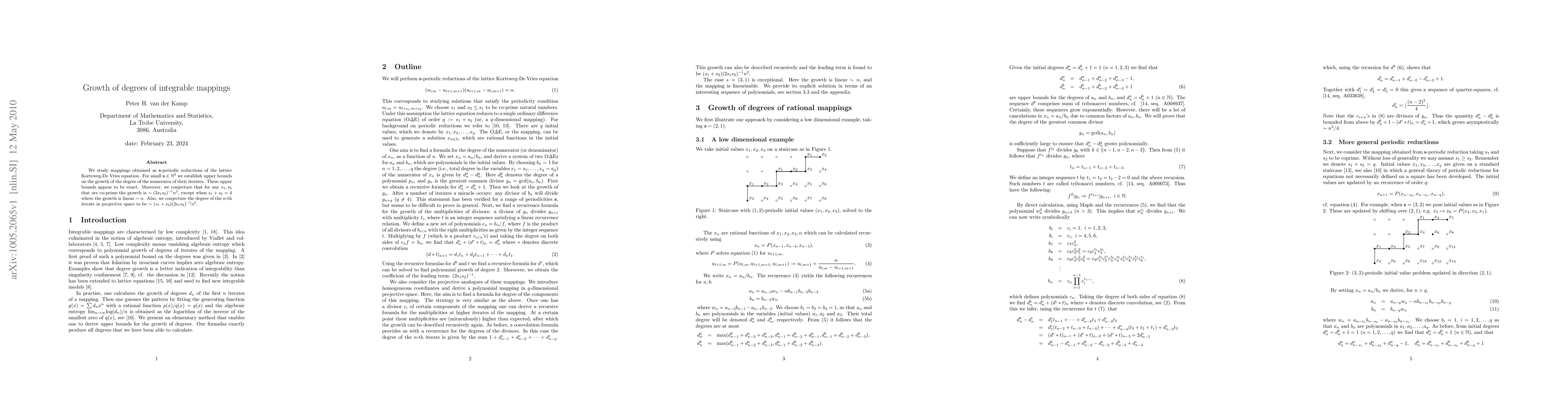 We study mappings obtained as s-periodic reductions of the lattice Korteweg-De Vries equation. For small s=(s1,s2) we establish upper bounds on the growth of the degree of the numerator of their iterates. These upper bounds appear to be exact. Moreover, we conjecture that for any s1,s2 that are co-prime the growth is ~n^2/(2s1s2), except when s1+s2=4 where the growth is linear ~n. Also, we conjecture the degree of the n-th iterate in projective space to be ~n^2(s1+s2)/(2s1s2).