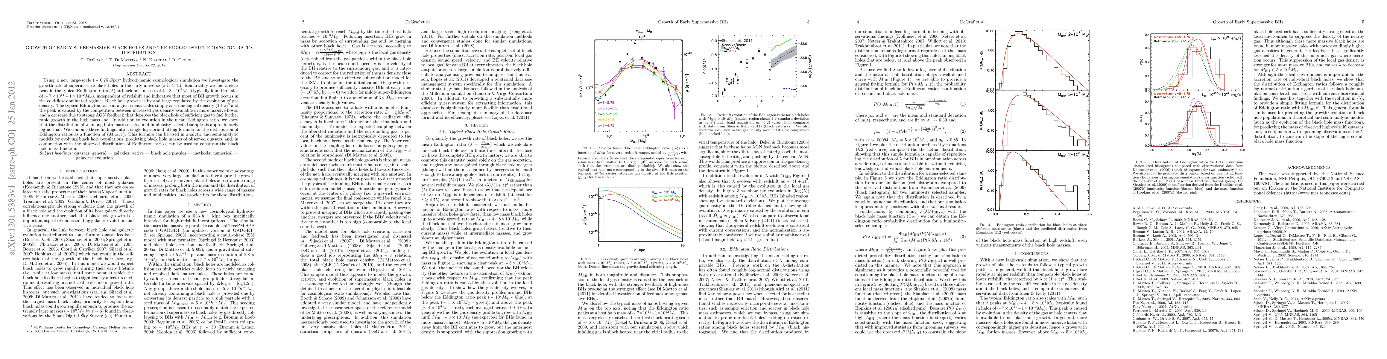 Using a new large-scale (~ 0.75 Gpc)^3 hydrodynamic cosmological simulation we investigate the growth rate of supermassive black holes in the early universe (z > 4.75). Remarkably, we find a clear peak in the typical Eddington ratio at black hole masses of 4-8 * 10^7 solar masses (typically found in halos of ~7 * 10^11 to 10^12 solar masses), independent of redshift and indicative that most of BH growth occurs in the cold-flow dominated regime. Black hole growth is by and large regulated by the evolution of gas density. The typical Eddington ratio at a given mass scales simply as cosmological density (1+z)^3 and the peak is caused by the competition between increased gas density available in more massive hosts, and a decrease due to strong AGN feedback that deprives the black hole of sufficient gas to fuel further rapid growth in the high mass end. In addition to evolution in the mean Eddington ratio, we show that the distribution of Eddington ratio among both mass-selected and luminosity-selected samples is approximately log-normal. We combine these findings into a single log-normal fitting formula for the distribution of Eddington ratios as a function of (M_BH,z). This formula can be used in analytic and semi analytic models for evolving black hole populations, predicting black hole masses of observed quasars, and, in conjunction with the observed distribution of Eddington ratios, can be used to constrain the black hole mass function.