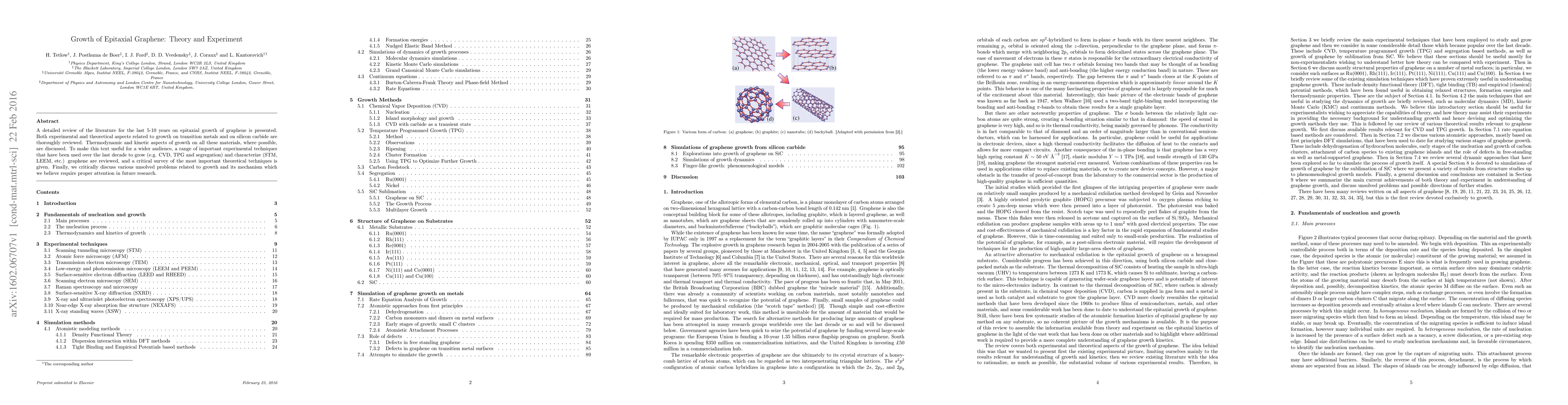 This paper reviews both theoretical and experimental studies on epitaxial graphene growth over the past decade, focusing on methods like CVD and TPG, and techniques such as STM and LEEM. It highlights unresolved issues in the growth mechanisms and suggests future research directions.