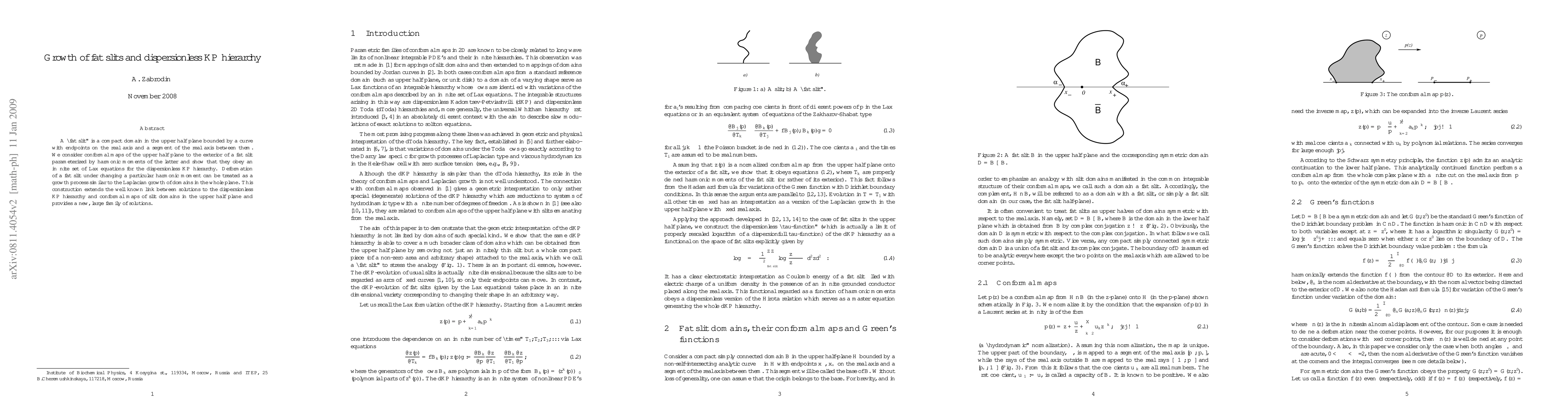 This paper explores conformal maps of the upper half plane to the exterior of a "fat slit," demonstrating that these maps obey an infinite set of Lax equations for the dispersionless KP hierarchy, extending the known link between solutions to this hierarchy and slit domains.