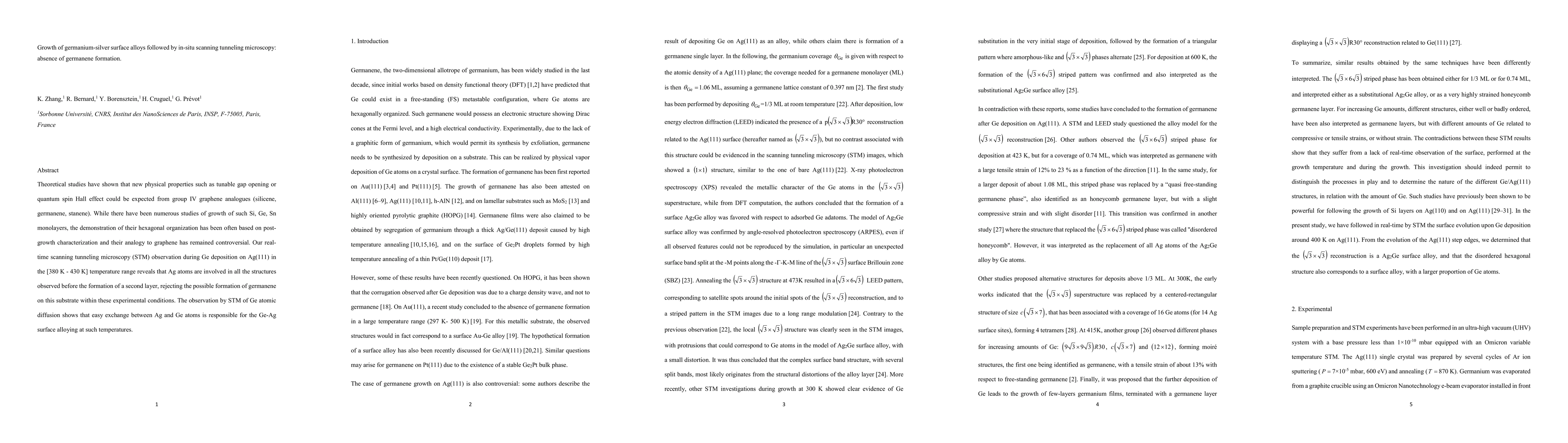 The paper presents a detailed real-time STM study of Ge-Ag surface alloy formation, identifying the diffusion mechanism of Ge atoms on Ag(111) and confirming the absence of germanene.