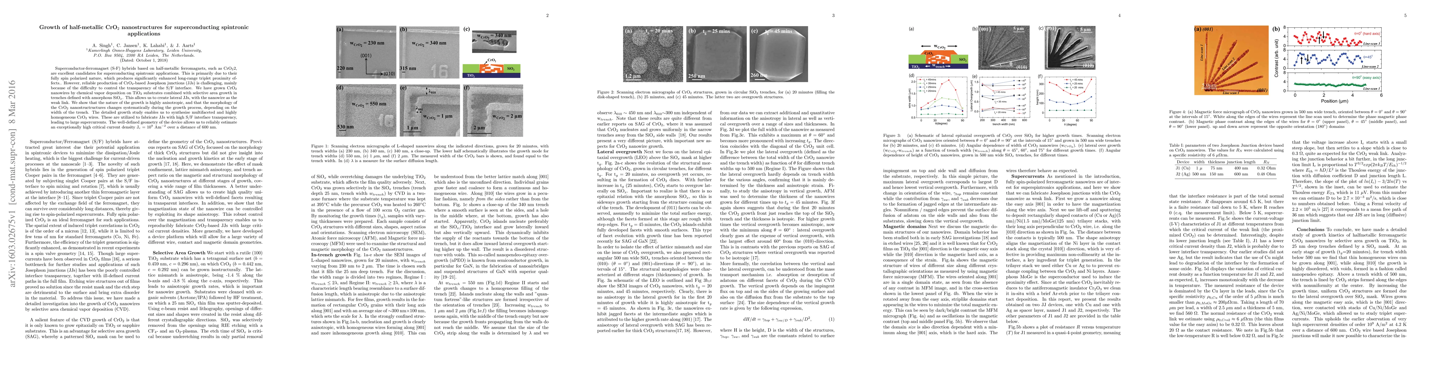 This study details the growth of anisotropic CrO2 nanowires using chemical vapor deposition, enabling the fabrication of high-performance Josephson junctions with an exceptionally high critical current density of 10^9 Am^{-2}, demonstrating potential for superconducting spintronic applications.