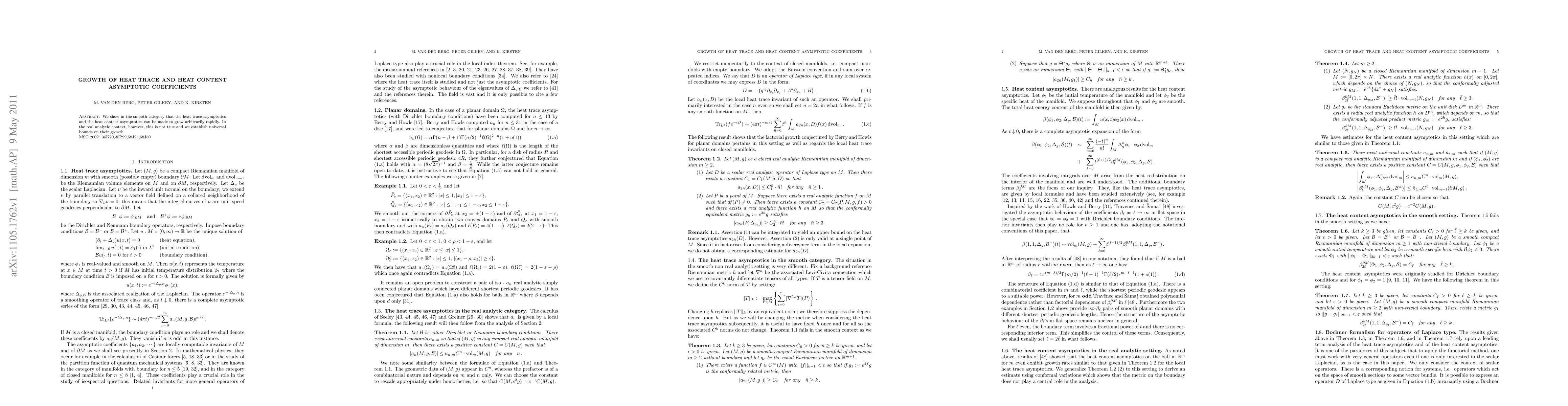 This paper demonstrates that in smooth functions, the heat trace and heat content asymptotic coefficients can grow arbitrarily fast, but in real analytic contexts, it establishes universal bounds on their growth rates.