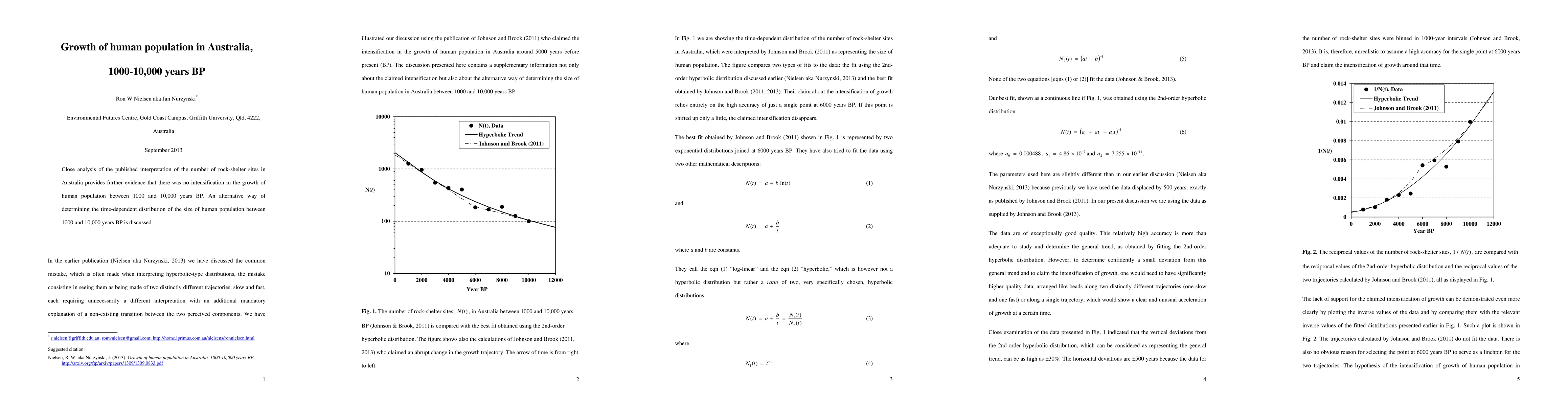 Close analysis of the published interpretation of the number of rock-shelter sites in Australia provides further evidence that there was no intensification in the growth of human population between 1000 and 10,000 years BP. An alternative way of determining the time-dependent distribution of the size of human population between 1000 and 10,000 years BP is discussed.