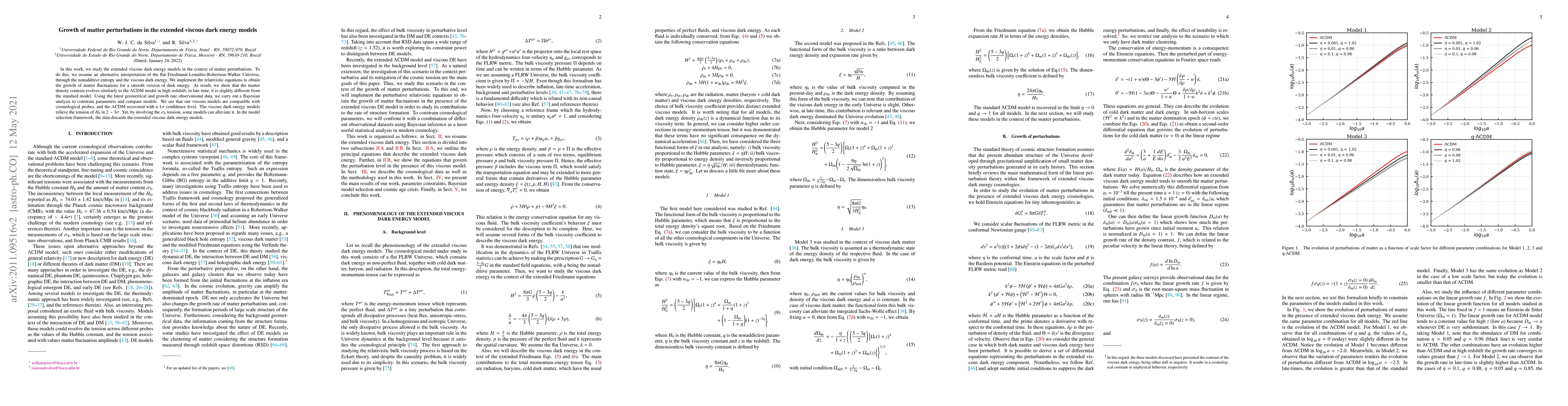 In this work, we study the extended viscous dark energy models in the context of matter perturbations. To do this, we assume an alternative interpretation of the flat Friedmann-Lema\^itre-Robertson-Walker Universe, through the nonadditive entropy and the viscous dark energy. We implement the relativistic equations to obtain the growth of matter fluctuations for a smooth version of dark energy. As result, we show that the matter density contrast evolves similarly to the $\Lambda$CDM model in high redshift; in late time, it is slightly different from the standard model. Using the latest geometrical and growth rate observational data, we carry out a Bayesian analysis to constrain parameters and compare models. We see that our viscous models are compatible with cosmological probes, and the $\Lambda$CDM recovered with a $1\sigma$ confidence level. The viscous dark energy models relieve the tension of $H_0$ in $2 \sim 3 \sigma$. Yet, by involving the $\sigma_8$ tension, some models can alleviate it. In the model selection framework, the data discards the extended viscous dark energy models.