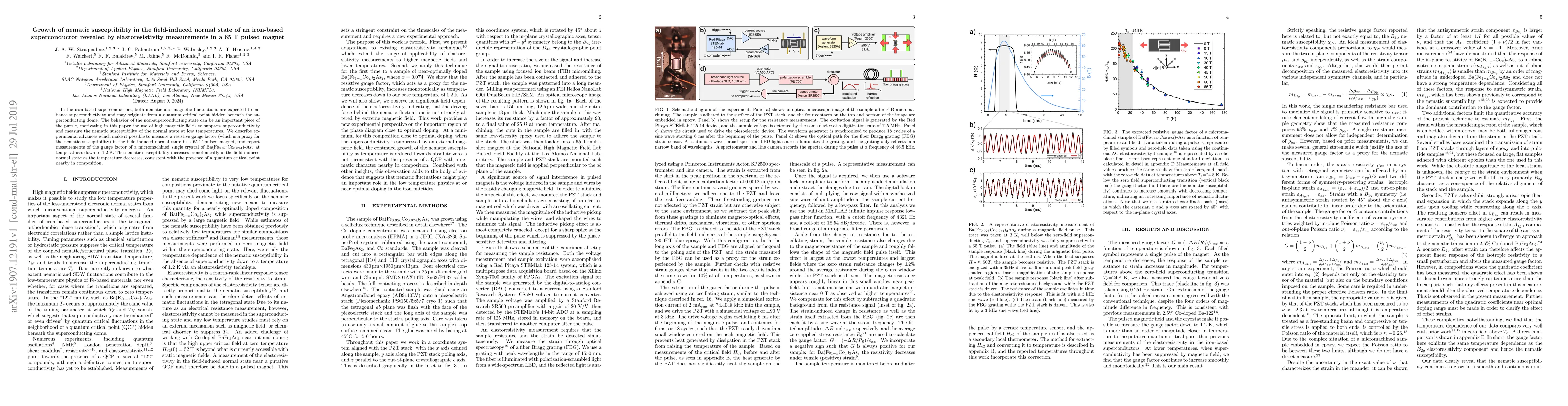 In the iron-based superconductors, both nematic and magnetic fluctuations are expected to enhance superconductivity and may originate from a quantum critical point hidden beneath the superconducting dome. The behavior of the non-superconducting state can be an important piece of the puzzle, motivating in this paper the use of high magnetic fields to suppress superconductivity and measure the nematic susceptibility of the normal state at low temperatures. We describe experimental advances which make it possible to measure a resistive gauge factor (which is a proxy for the nematic susceptibility) in the field-induced normal state in a 65 T pulsed magnet, and report measurements of the gauge factor of a micromachined single crystal of Ba(Fe$_{0.926}$Co$_{0.074}$)$_2$As$_2$ at temperatures down to 1.2 K. The nematic susceptibility increases monotonically in the field-induced normal state as the temperature decreases, consistent with the presence of a quantum critical point nearby in composition.