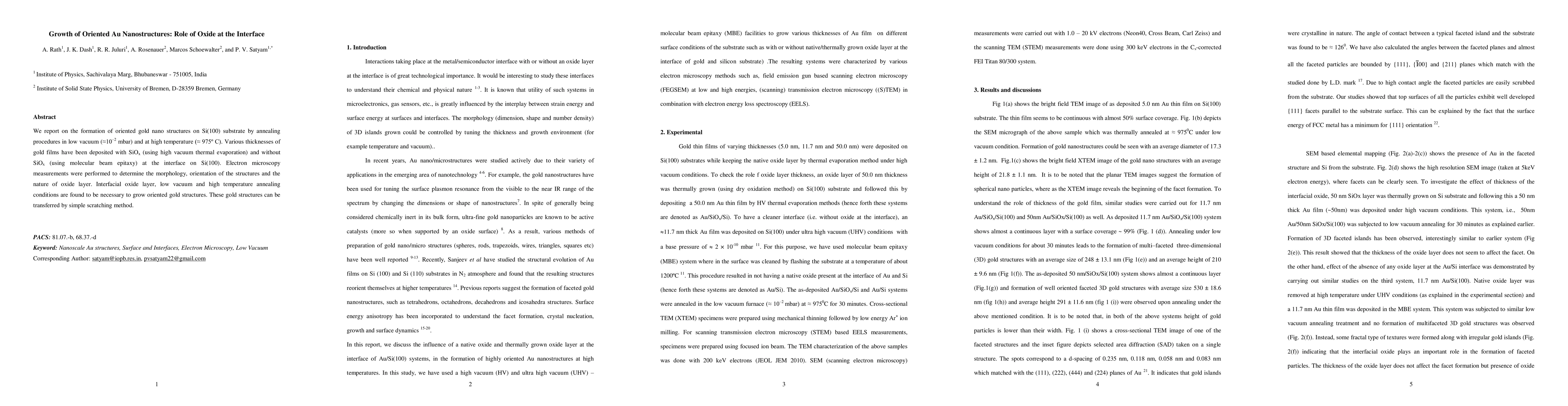 This paper explores the formation of oriented gold nanostructures on Si(100) substrates via annealing in low vacuum and high temperature, emphasizing the role of an interfacial oxide layer. The study reveals that the oxide layer, along with specific annealing conditions, is crucial for the growth of these structures, which can then be transferred using a scratching method.