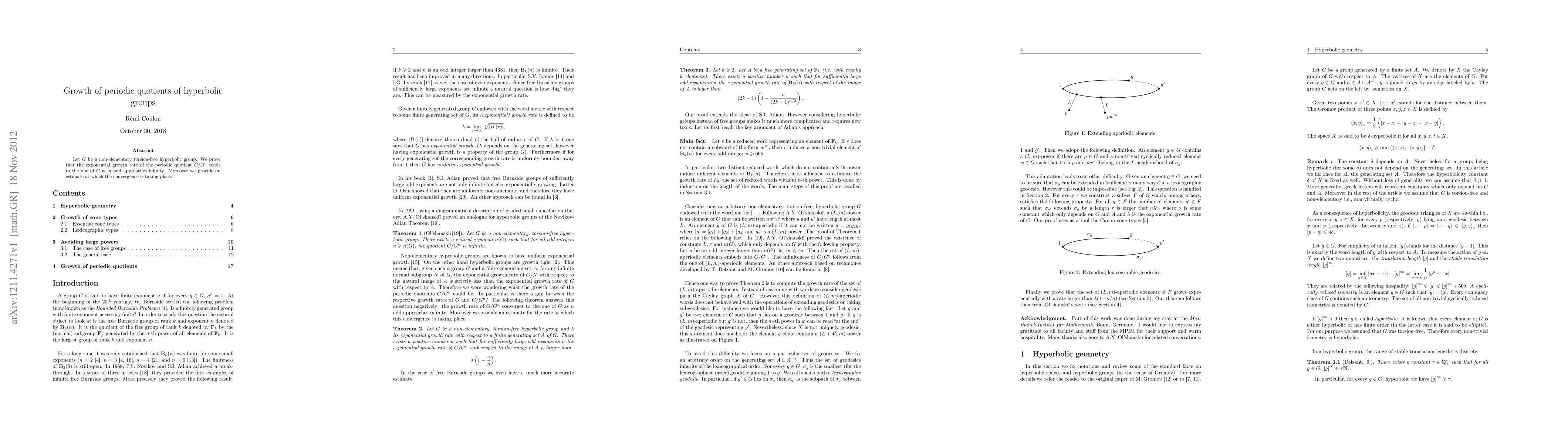 Let G be a non-elementary torsion-free hyperbolic group. We prove that the exponential growth rate of the periodic quotient G/G^n tends to the one of G as n odd approaches infinity. Moreover we provide an estimate at which the convergence is taking place.
