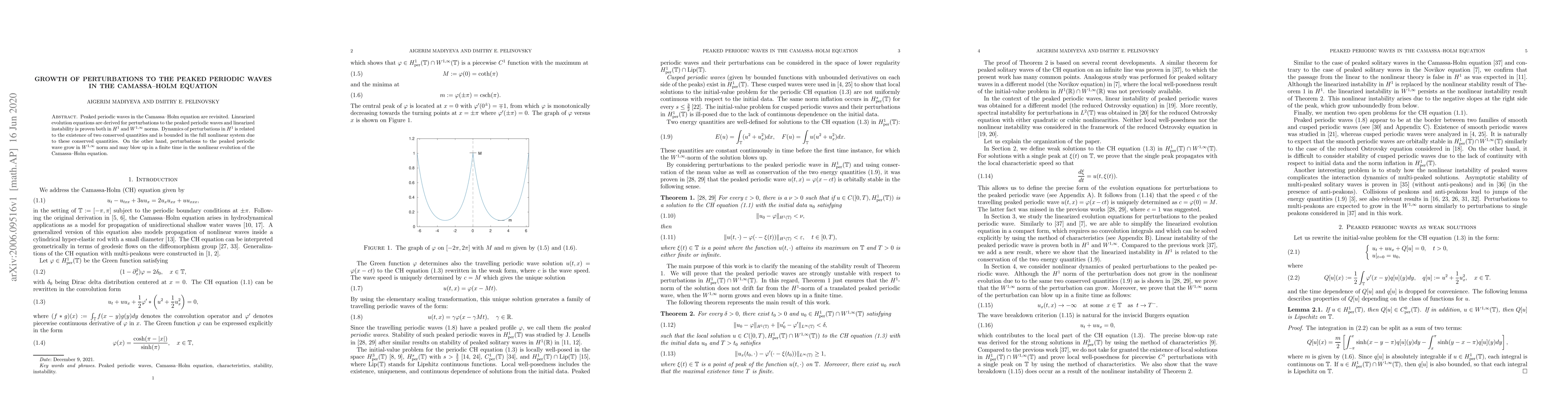 This paper investigates the growth of perturbations to peaked periodic waves in the Camassa-Holm equation, proving linearized instability in $H^1$ and $W^{1,\infty}$ norms. While perturbations remain bounded in $H^1$ due to conserved quantities, they grow unbounded in $W^{1,\infty}$ norm, potentially leading to finite time blow-up.