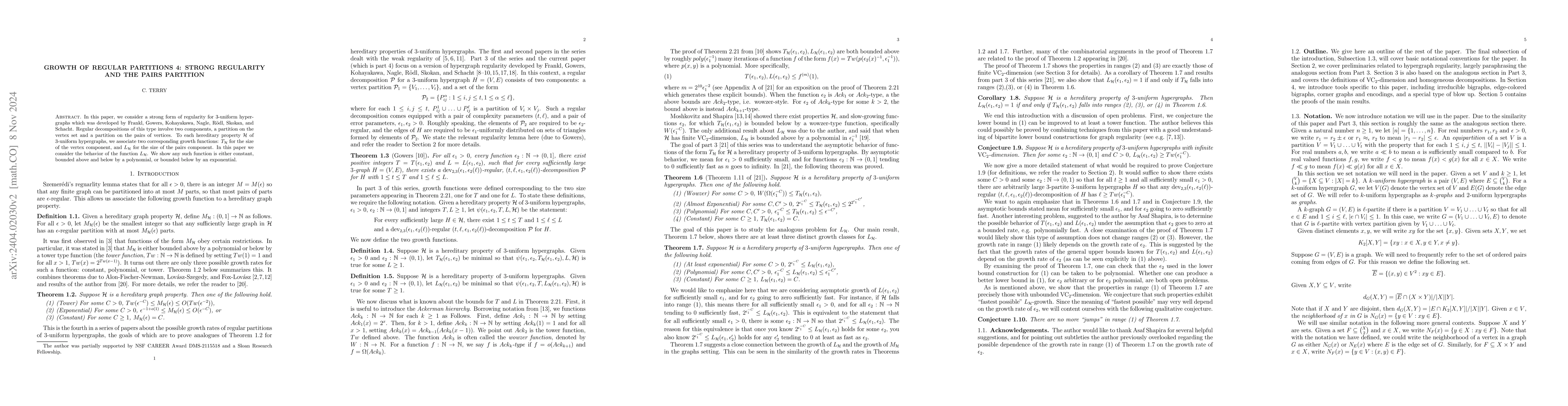 This is the fourth in a series of papers on the growth of regular partitions in $3$-uniform hypergraphs. In this paper, we consider a form of regularity for $3$-uniform hypergraphs which was developed by Frankl, Gowers, Kohayakawa, Nagle, R\"{o}dl, Skokan, and Schacht. Regular decompositions of this type involve two components, a partition on the vertex set and a partition on the pairs of vertices. To each hereditary property $\mathcal{H}$ of $3$-uniform hypergraphs, we associate two corresponding growth functions: $T_{\mathcal{H}}$ for the size of the vertex component, and $L_{\mathcal{H}}$ for the size of the pairs component. In this paper we consider the behavior of the function $L_{\mathcal{H}}$. We show any such function is either constant, bounded above and below by a polynomial, or bounded below by an exponential.