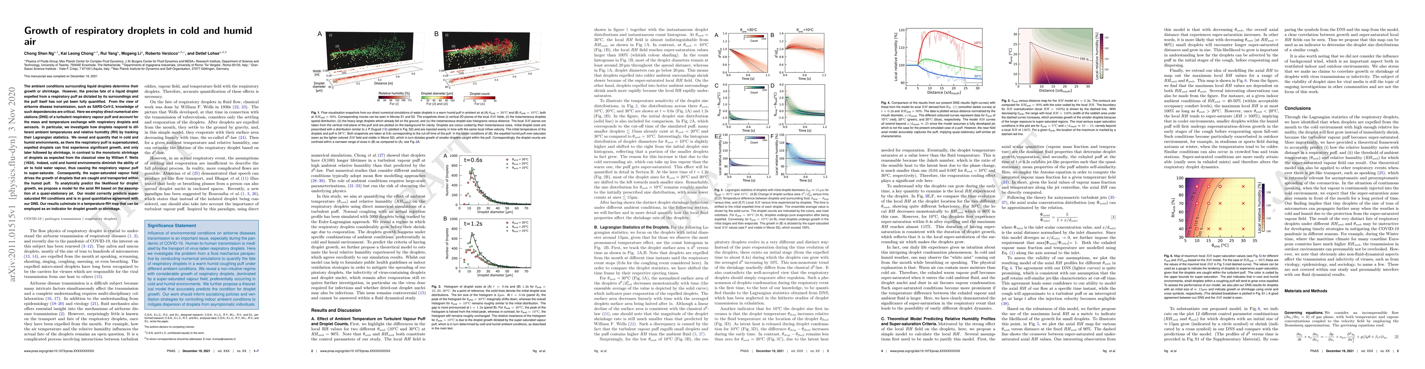 This study uses detailed simulations to show that in cold, humid air, respiratory droplets can temporarily grow due to super-saturated vapour conditions, contrary to traditional beliefs that they only shrink. The findings help predict when droplets might increase in size, impacting understanding of airborne disease spread.