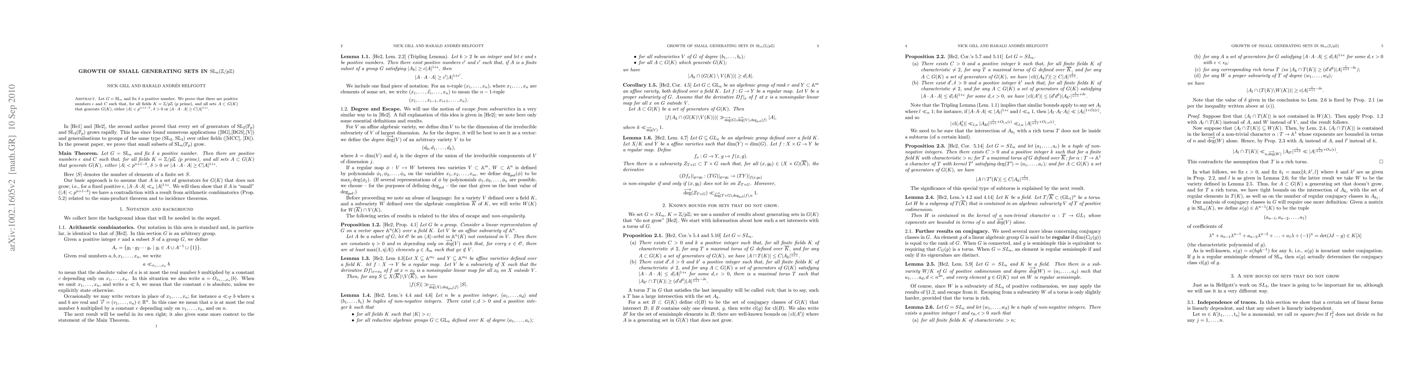 Let G=SL_n. Let K=Z/pZ, p a prime. Let A\subset G(K) generate G(K). Suppose that |A|
