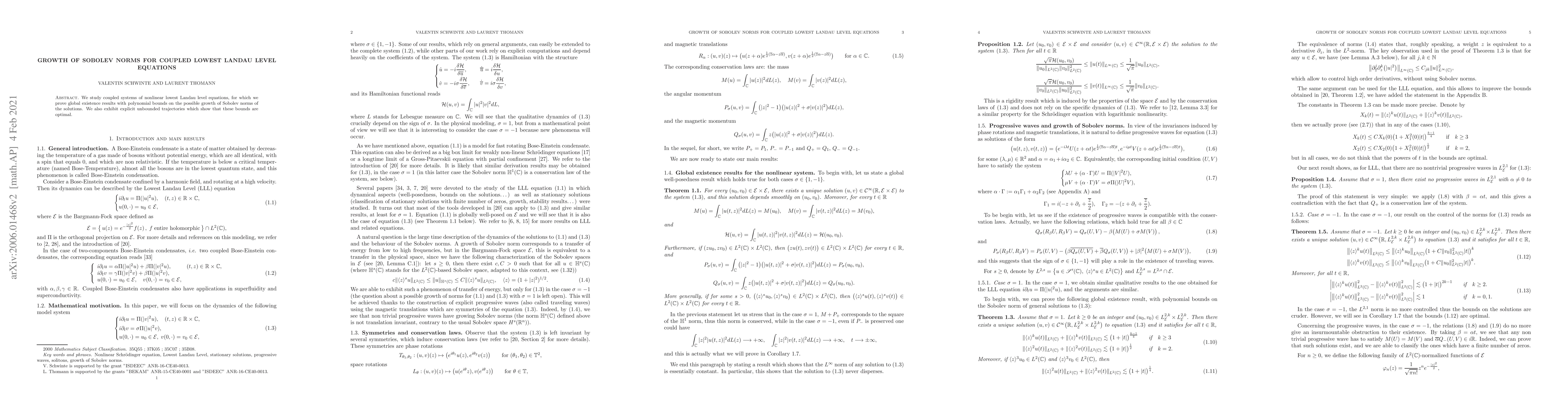 This paper proves global existence of coupled Lowest Landau Level equations with polynomial bounds on Sobolev norms, but also shows optimal growth via explicit unbounded trajectories.