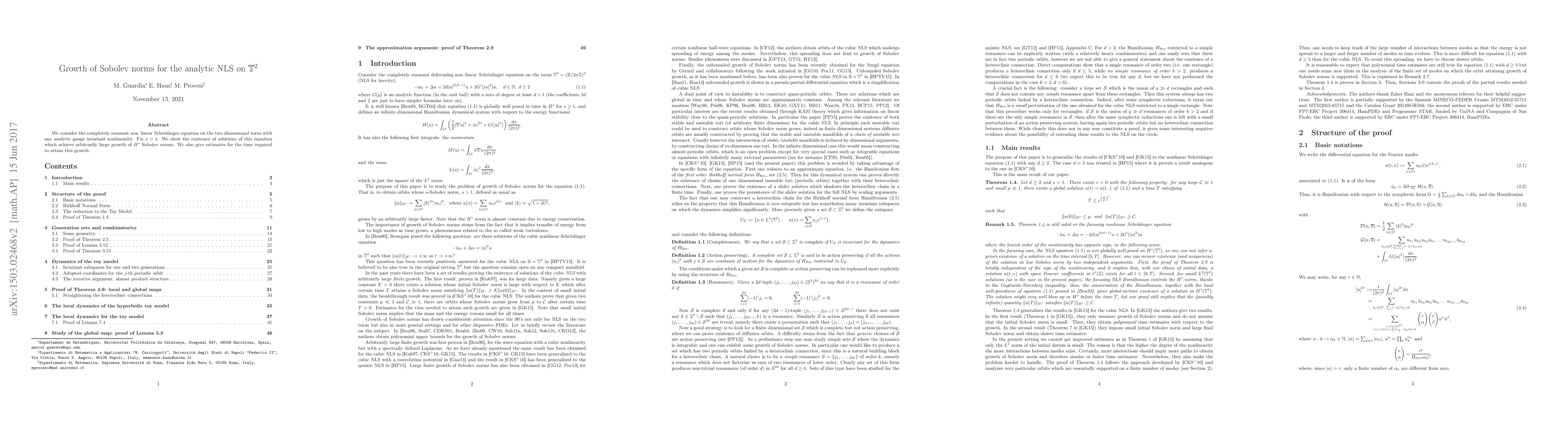 The paper presents a rigorous proof of the existence of solutions exhibiting unbounded growth of Sobolev norms, extending previous results to a broader class of analytic nonlinearities.